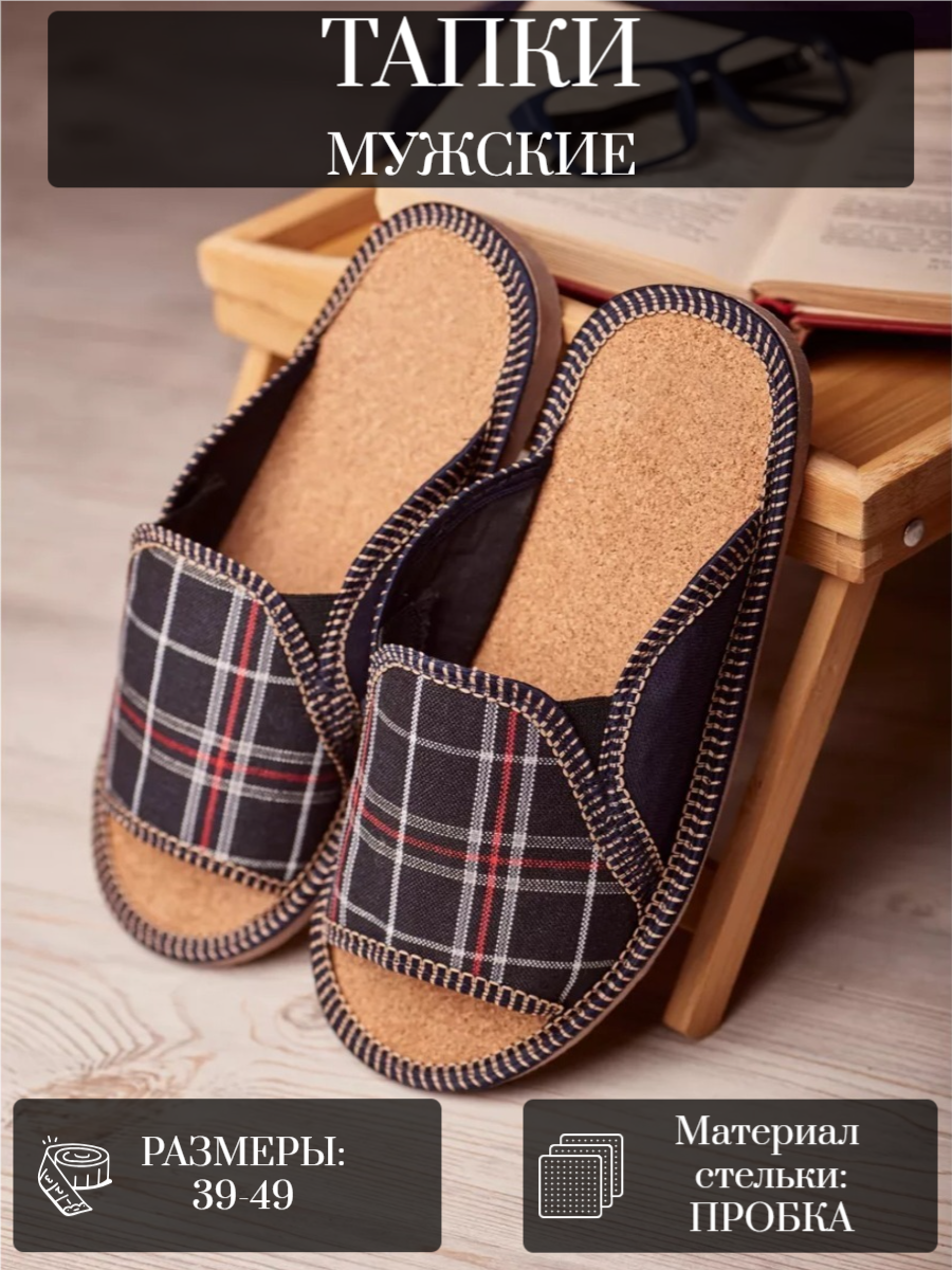 Отзывы на Мужские домашние тапки "LepiloV", открытые, на пробковой стельке, с резинками. Размер 41. Синяя клетка.