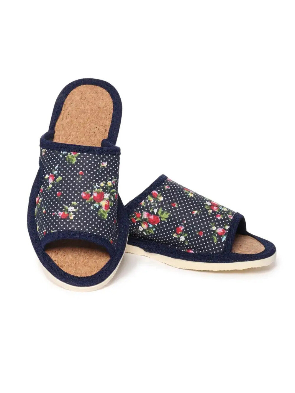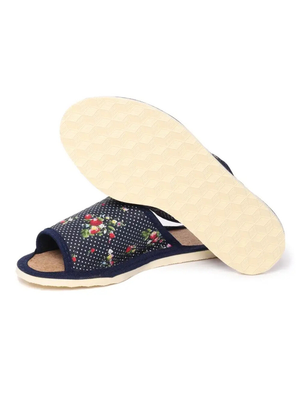 Отзывы на Женские домашние тапочки "LepiloV", открытые, на пробковой стельке. Размер 41. Синие, горох с цветами.