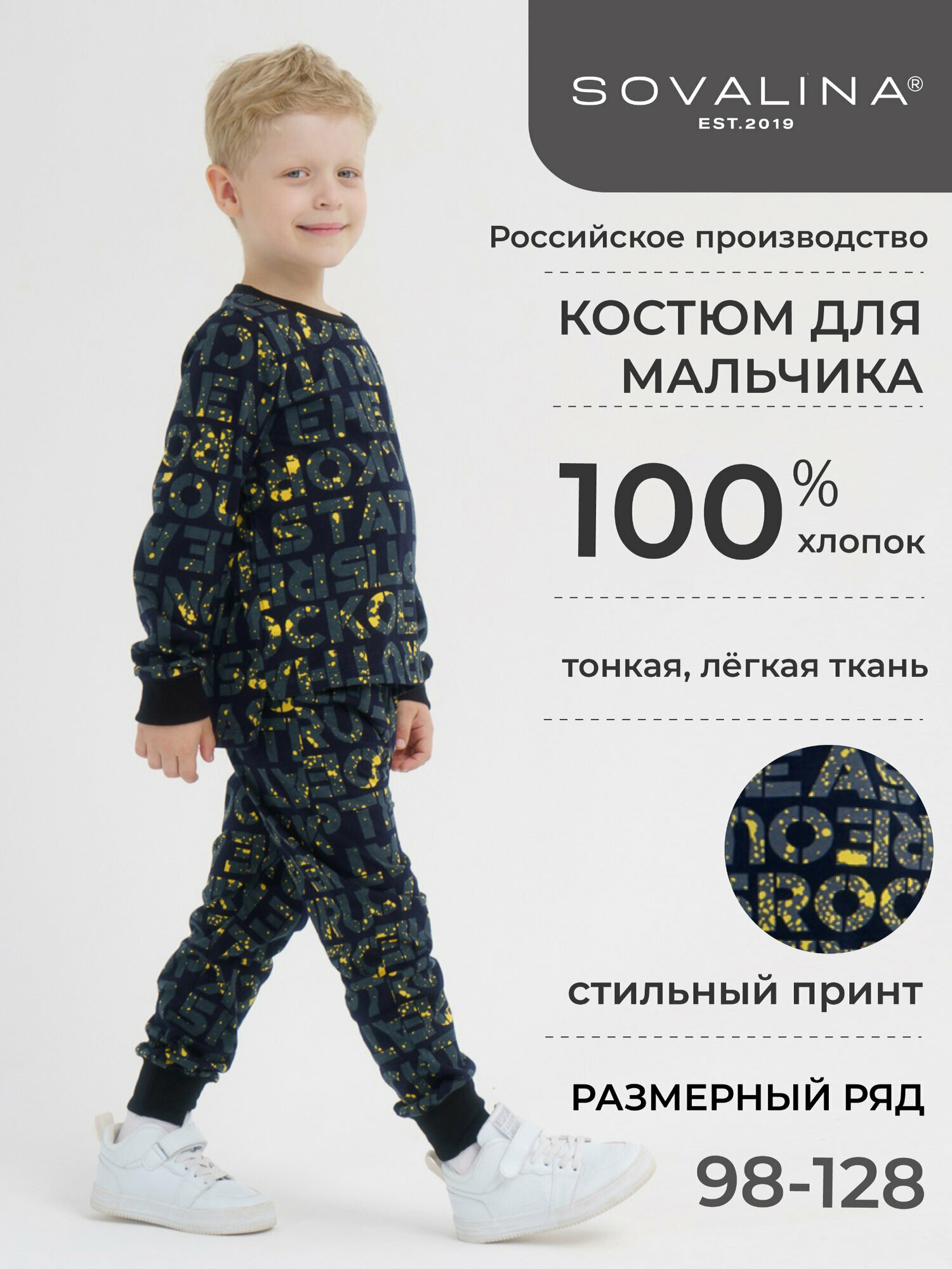 Комплект одежды SOVALINA Желтые буквы, размер 98, темно-синий/желтый 974 ₽