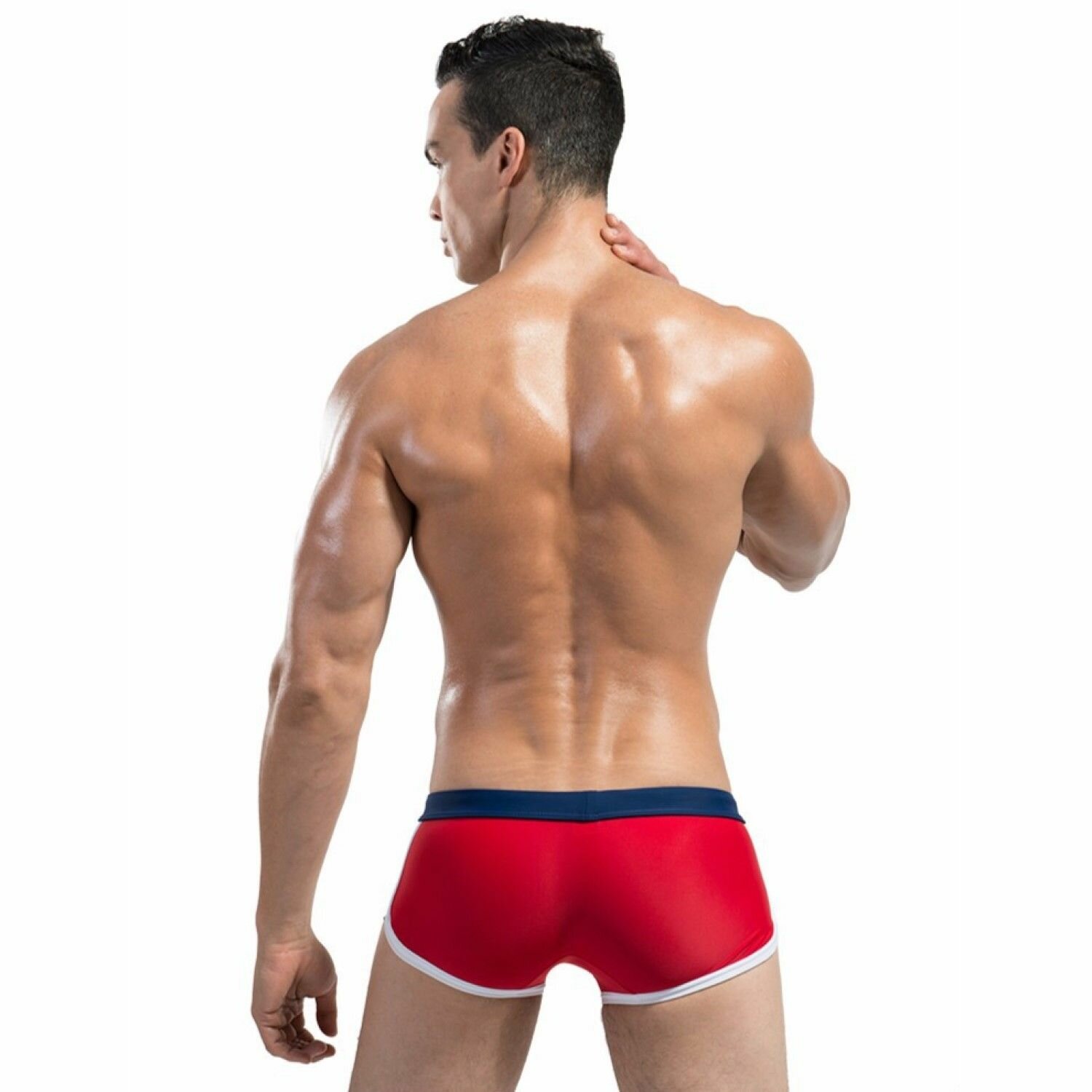 Стильные красные мужские плавки с контрастным поясом