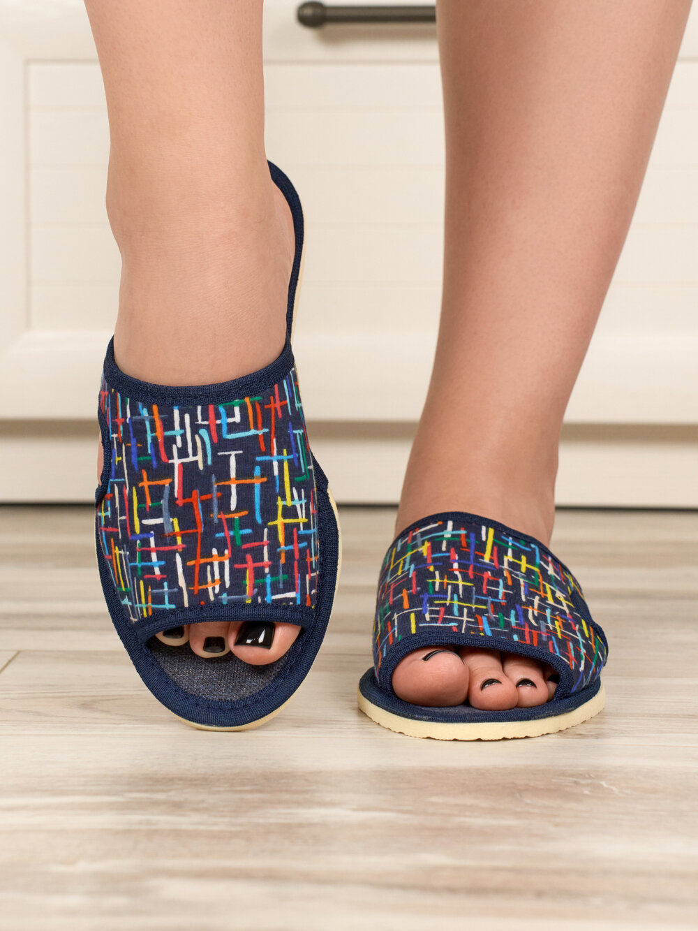 Отзывы на Женские домашние тапочки "LepiloV", открытые, на текстильной стельке. Размер 40. Чёрточки.