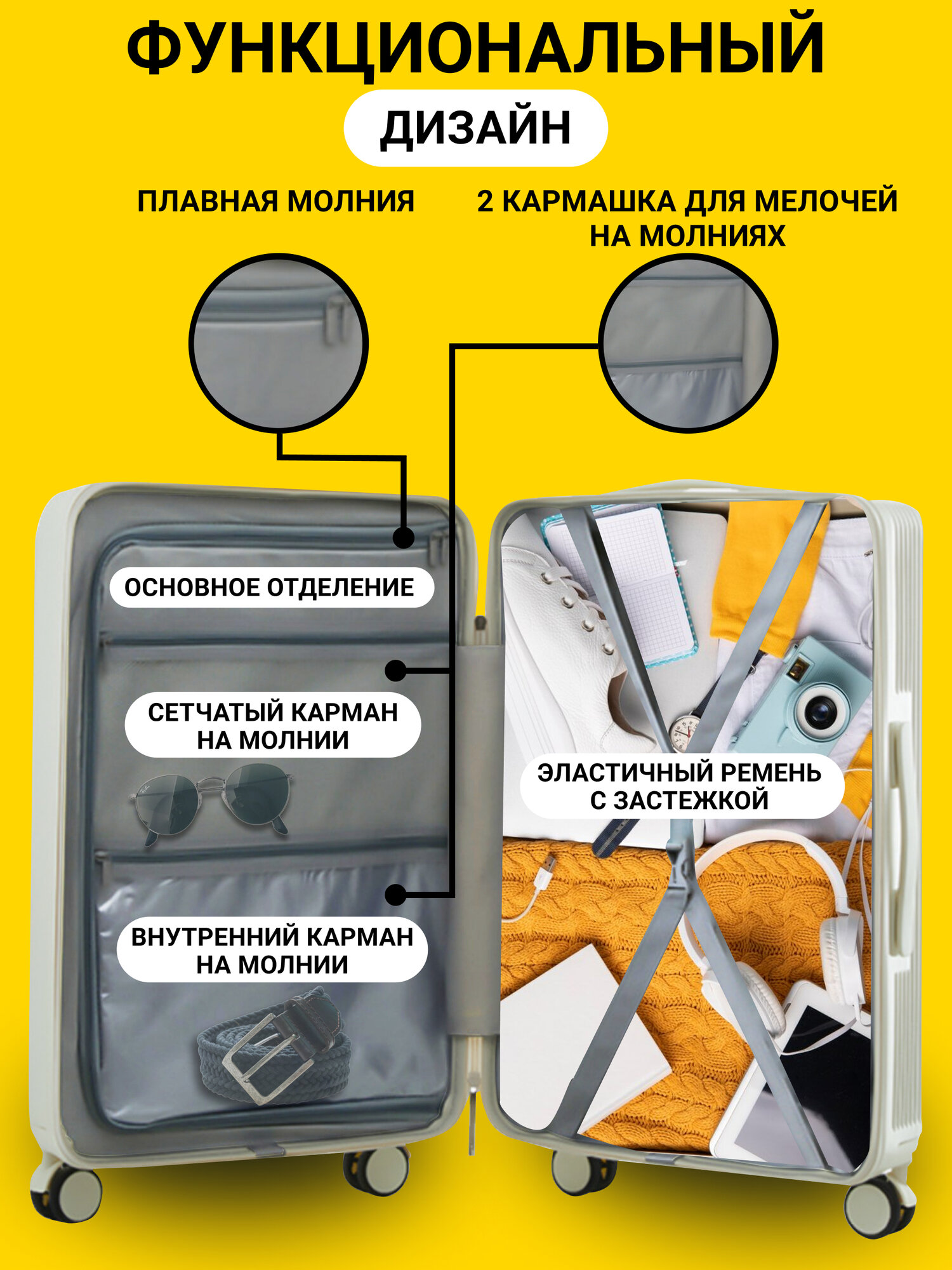 Чемодан на колесах M желтый чемодан средний чемодан М 11 980 ₽