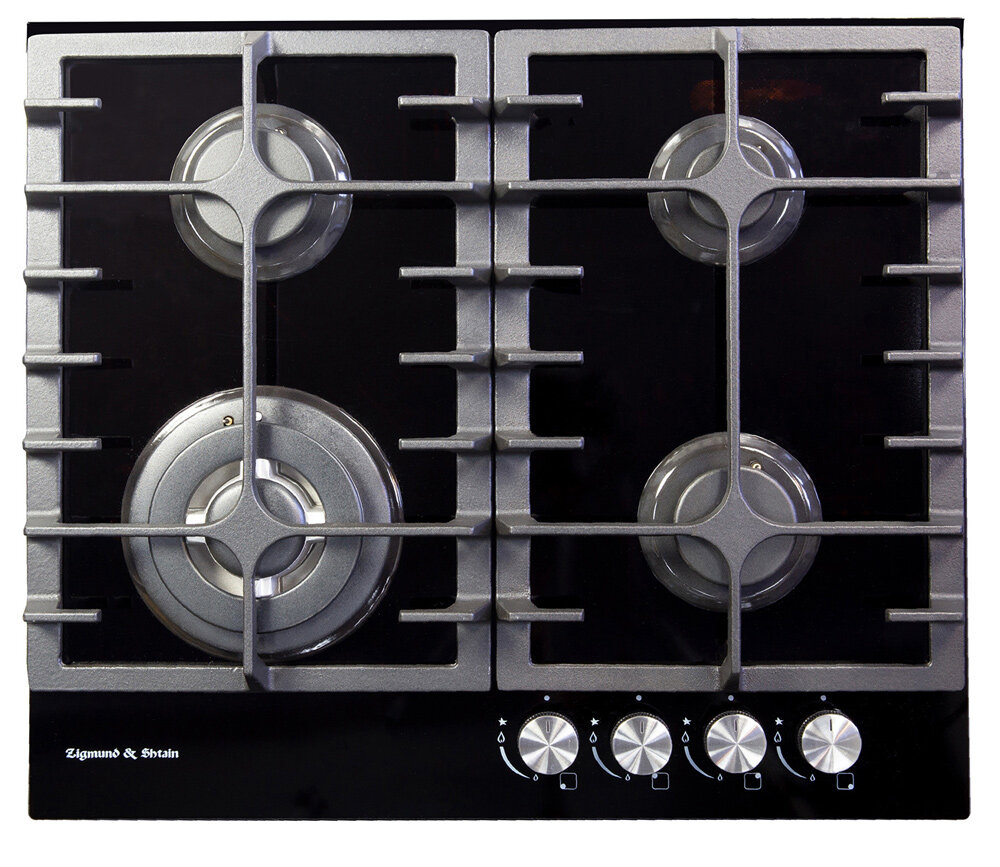 Варочная панель газовая встраиваемая Зигмунд & Штейн MN 197.61 B закаленное стекло черный 9.9х584х510мм 4 конфорки 2 решетки / газ-контроль /