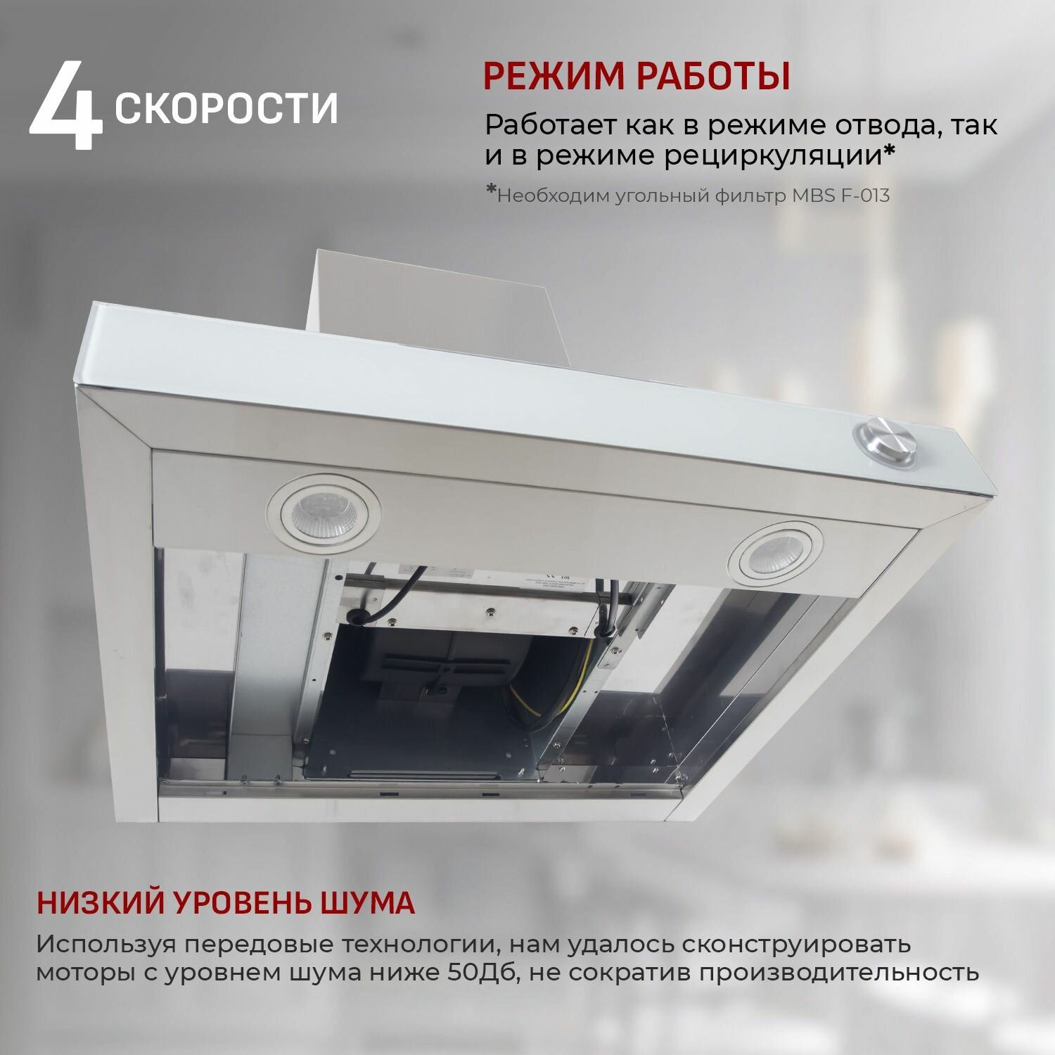 Кухонная вытяжка MBS MARANTA 160 WHITE GLASS/60 см/производительность 1030м3/ч, низкий уровень шума. 27 630 ₽
