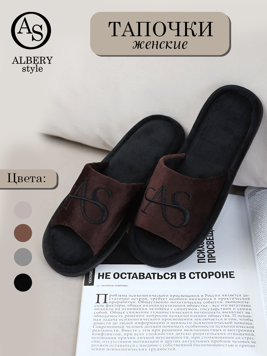 Отзывы на Тапочки женские домашние ALBERY,открытые,велюровые,коричневые,размер 38-39