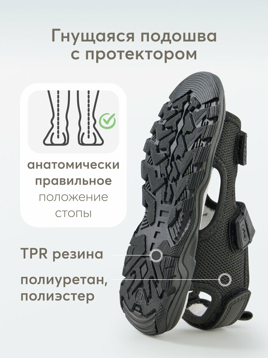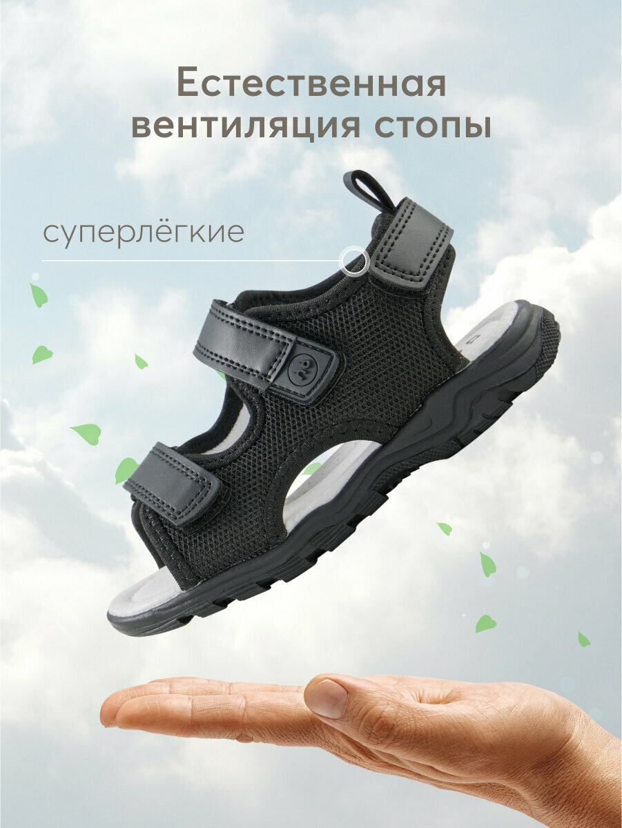 86528, Сандалии детские Happy Baby, босоножки для мальчика и для девочки, летние, в садик, на липучке, черные, размер 30 3 067 ₽