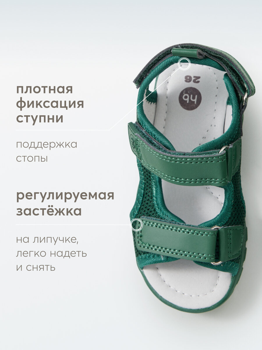 86528, Сандалии детские Happy Baby, босоножки для мальчика и для девочки, летние, в садик, на липучке, зеленые, размер 26 3 067 ₽