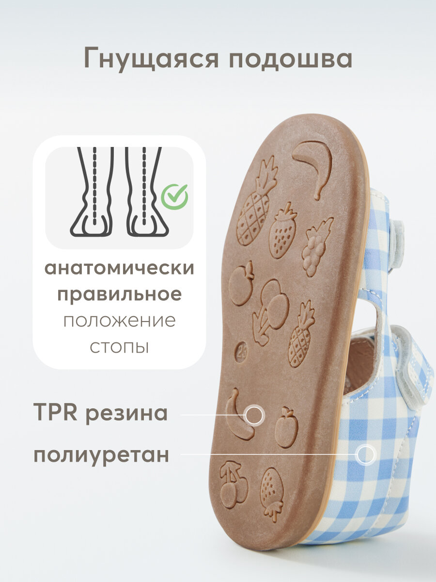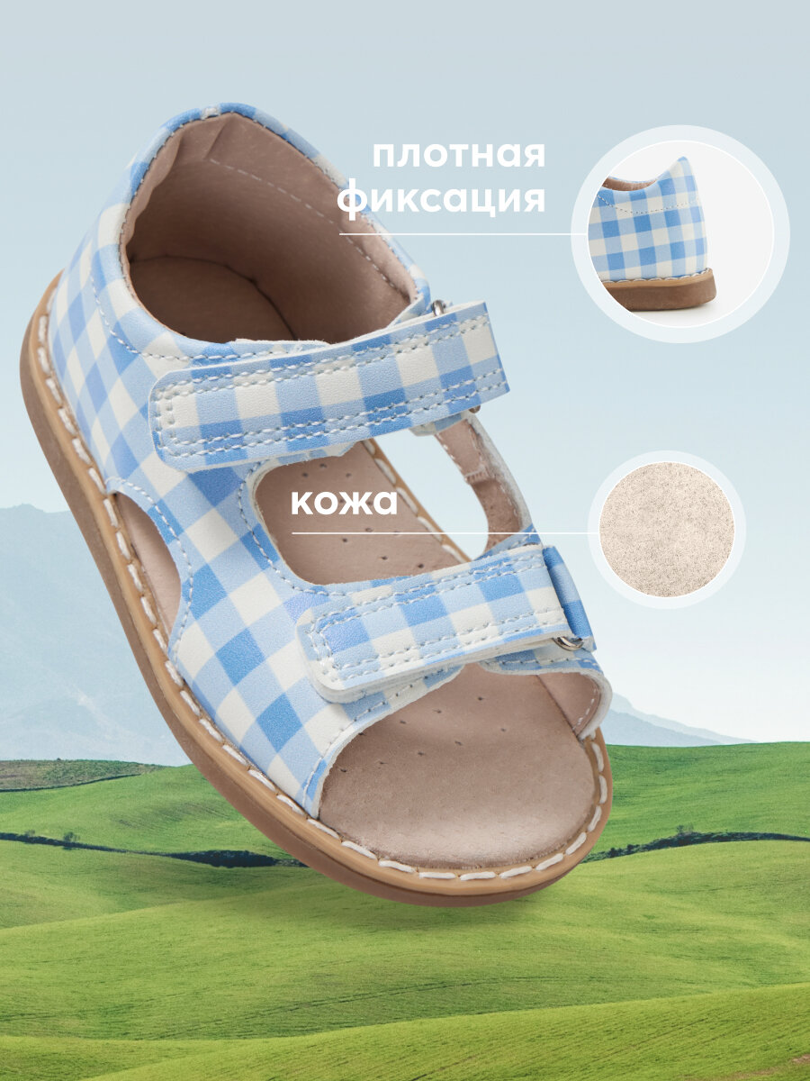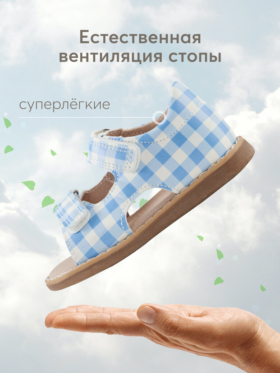86508, Сандалии детские Happy Baby, сандалии для девочки и мальчика, босоножки летние детские с плотной подошвой, голубые, размер 22 1 686 ₽