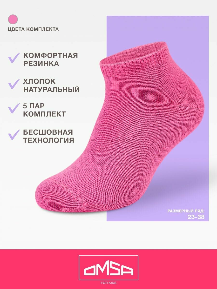 Носки детские OMSA kids Calzino 21C02, для мальчика, для девочки, короткие, цветные, хлопок , набор 5 пар,цвет Rosa, размер 35-38 информация: