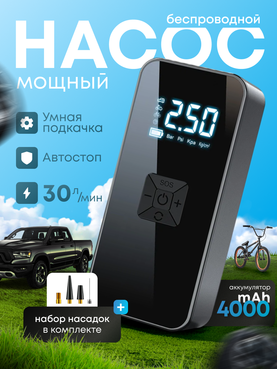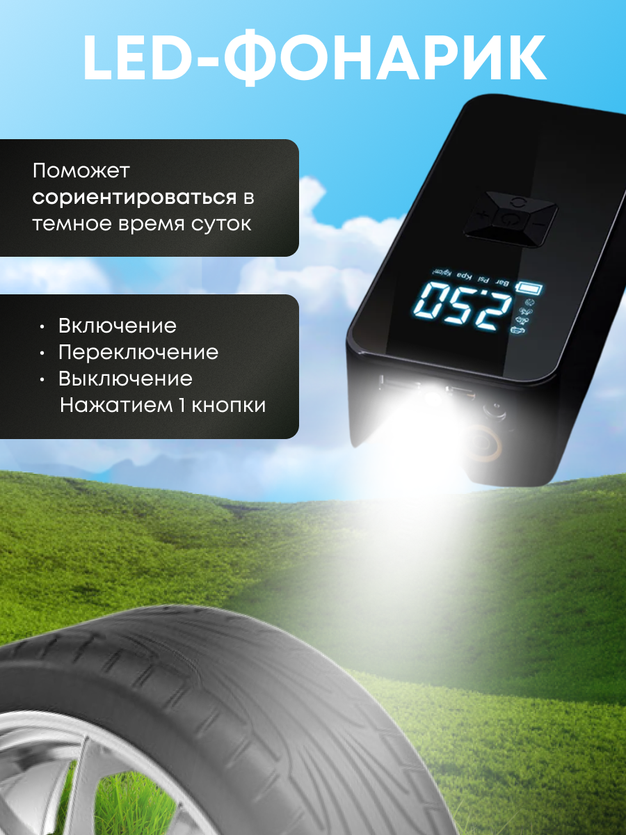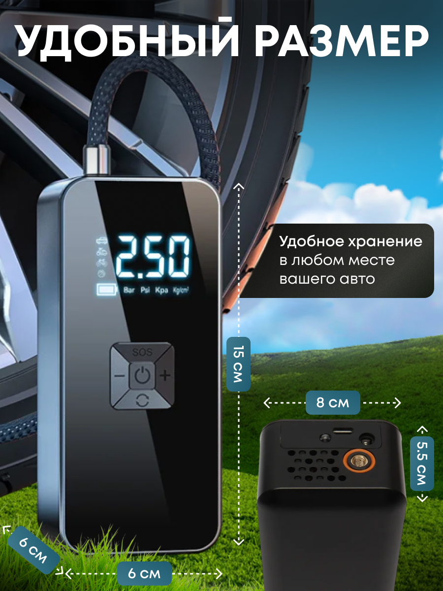 Отзывы на Автомобильный Двухпоршневый Компрессор с АКБ и Зарядкой от USB