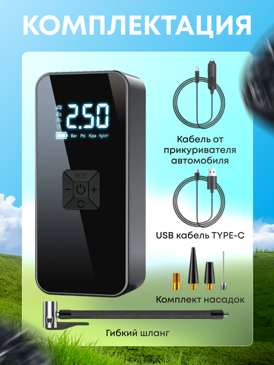 Автомобильный Двухпоршневый Компрессор с АКБ и Зарядкой от USB информация: