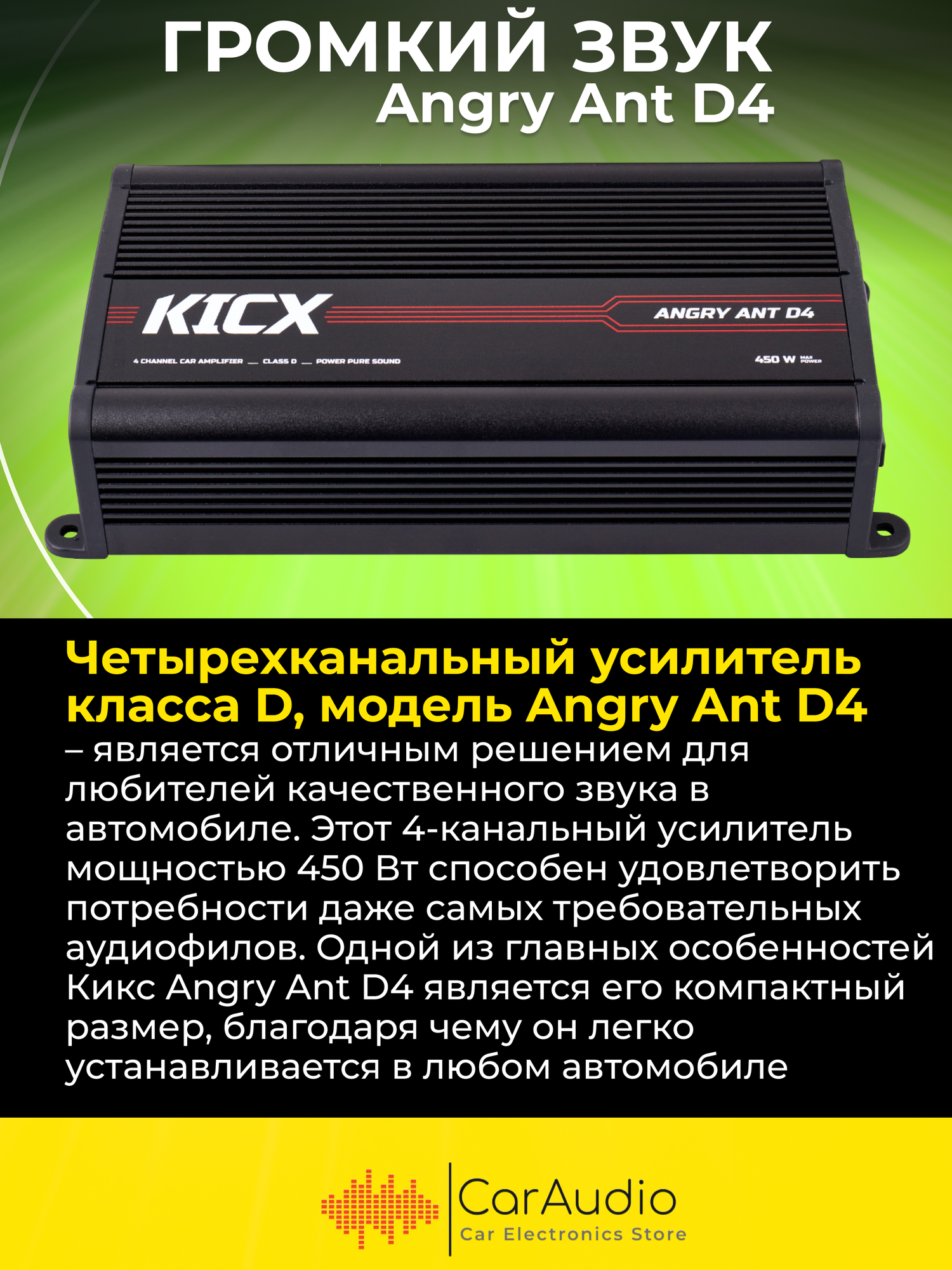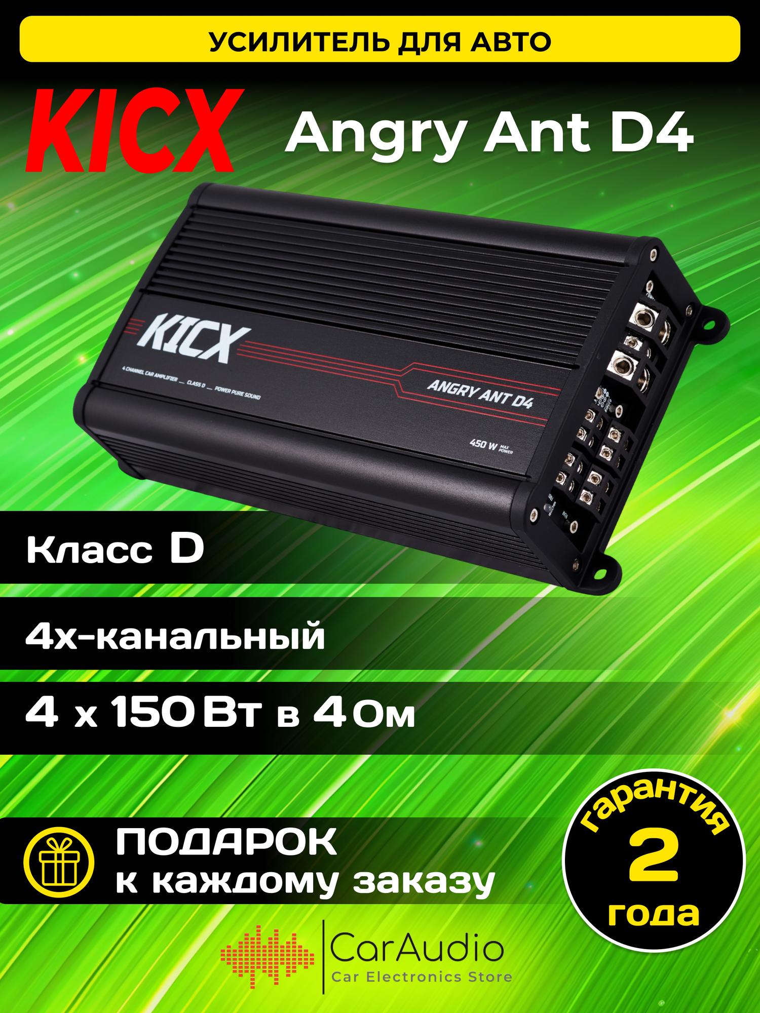 Автомобильный усилитель 4-канальный Kicx Angry Ant D 4 информация: