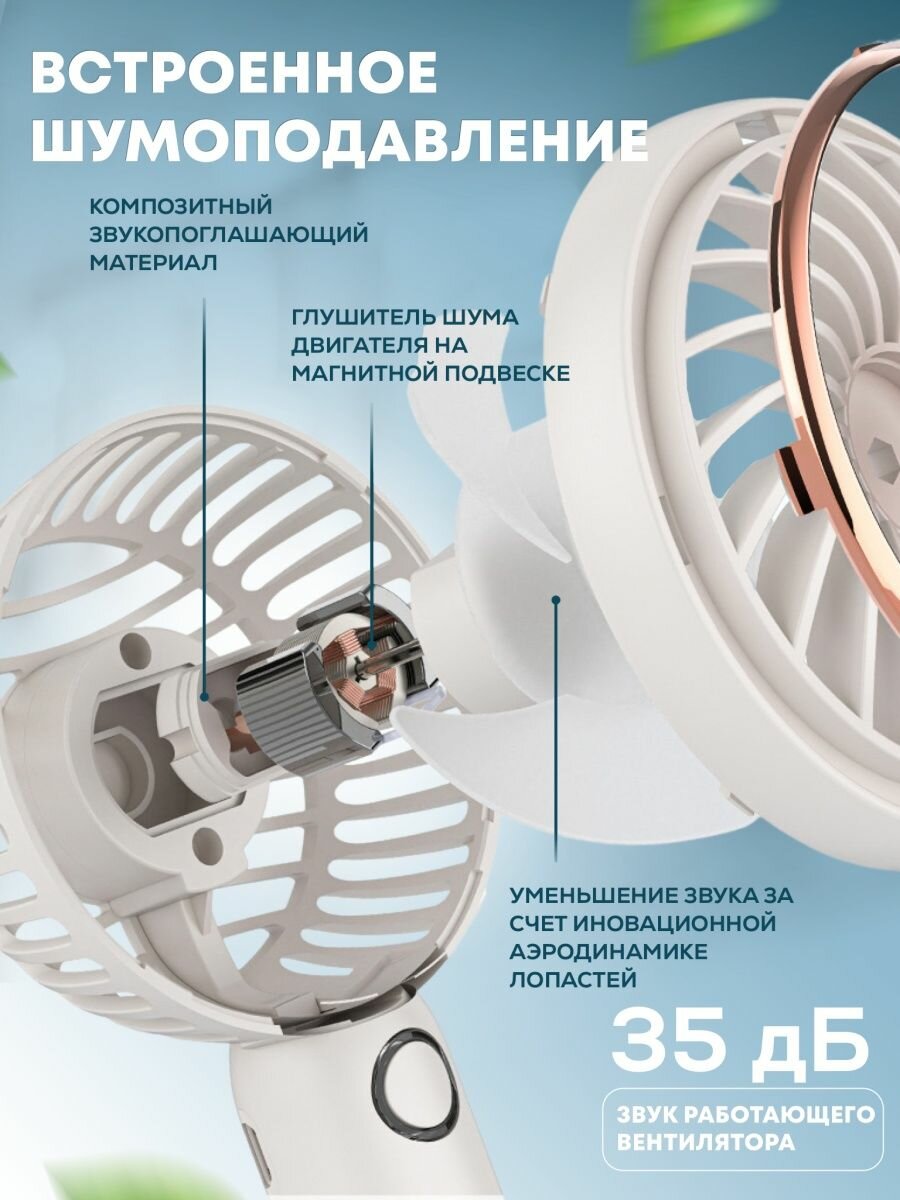 Вентилятор Power bank, складной, портативный, 5 скоростей работы, 3000 мАч, белый