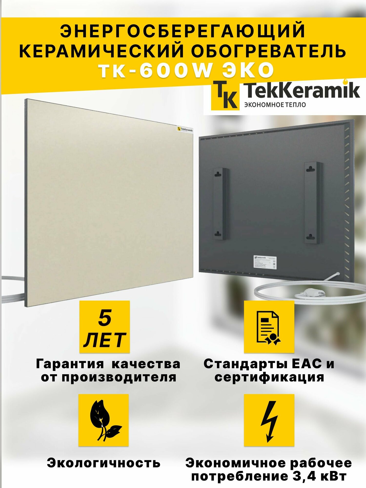 Керамический обогреватель TekKeramik (Теккерамик) ТК-600W бежевый информация: