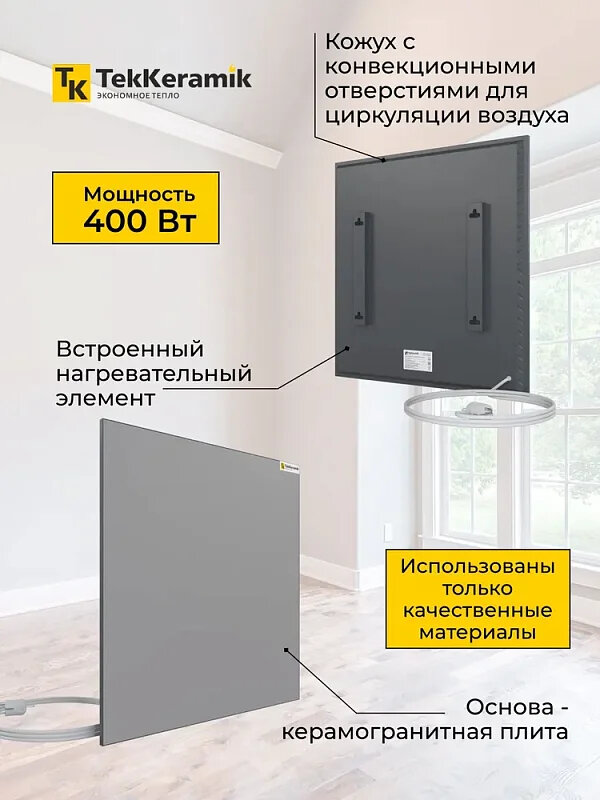 Керамический обогреватель TekKeramik ТК-400W ЭКО (светло-серый) информация: