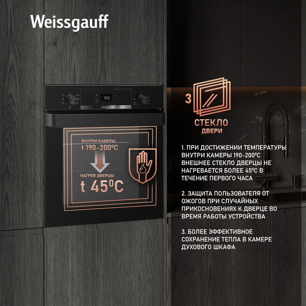 Электрический духовой шкаф Weissgauff EOV 676 SB Black Edition, конвекция и гриль, 60 см, 3 года гарантии