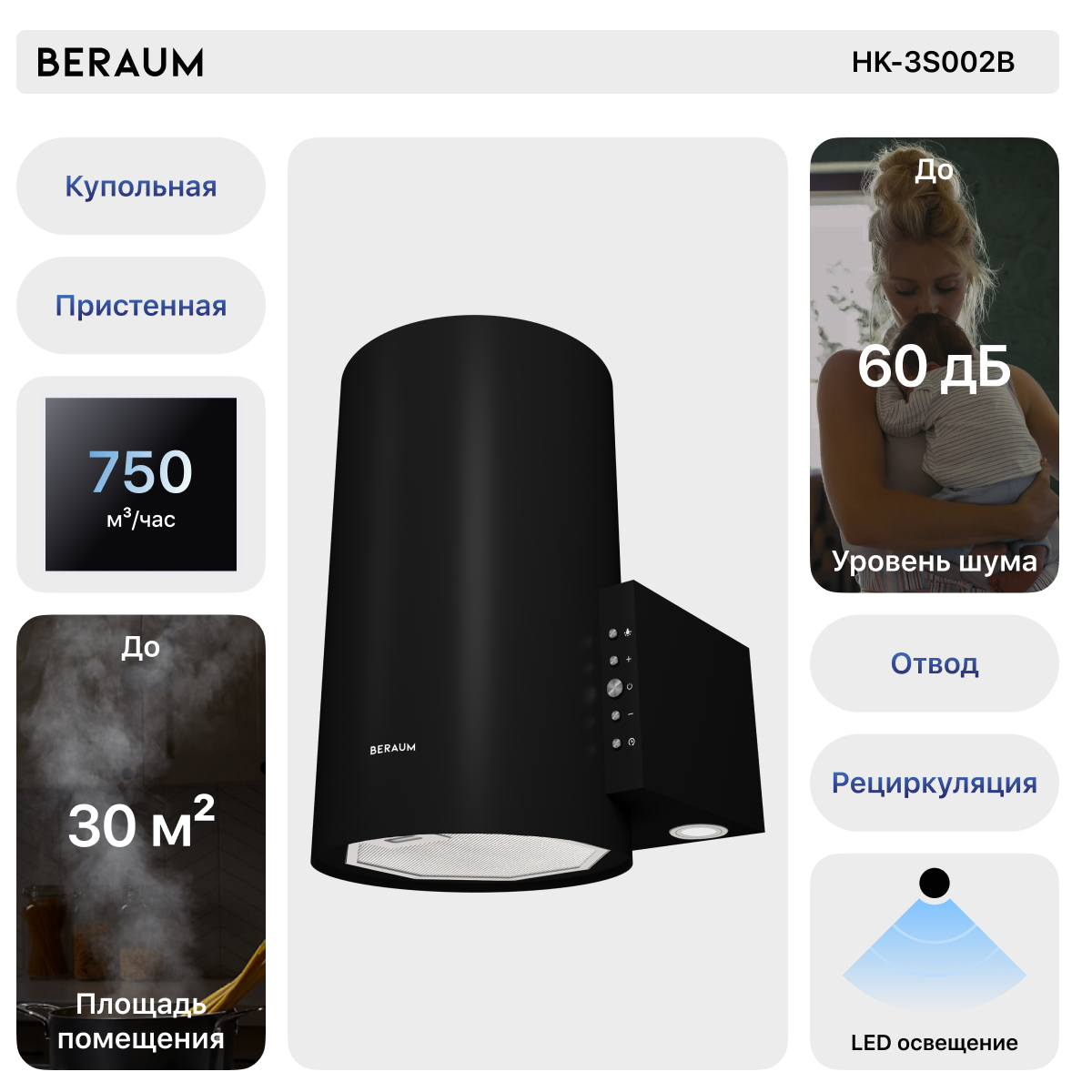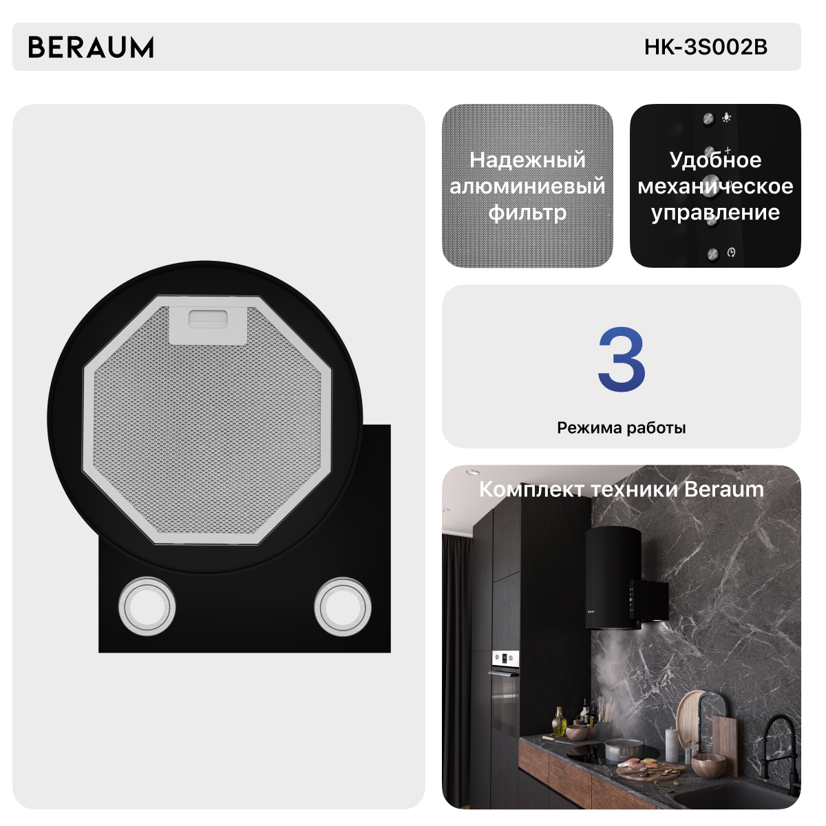Вытяжка кухонная Beraum HK-3S002B информация: