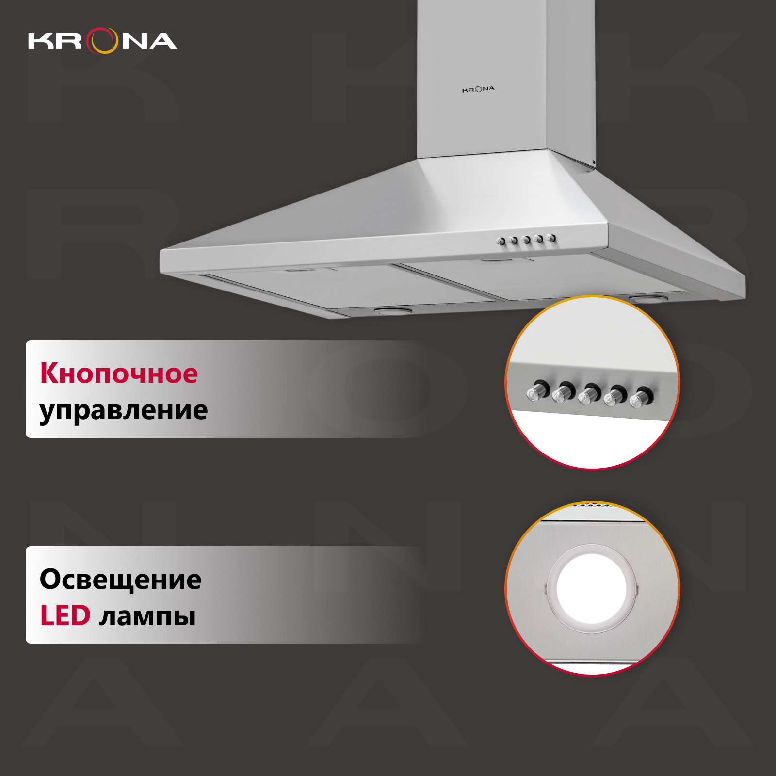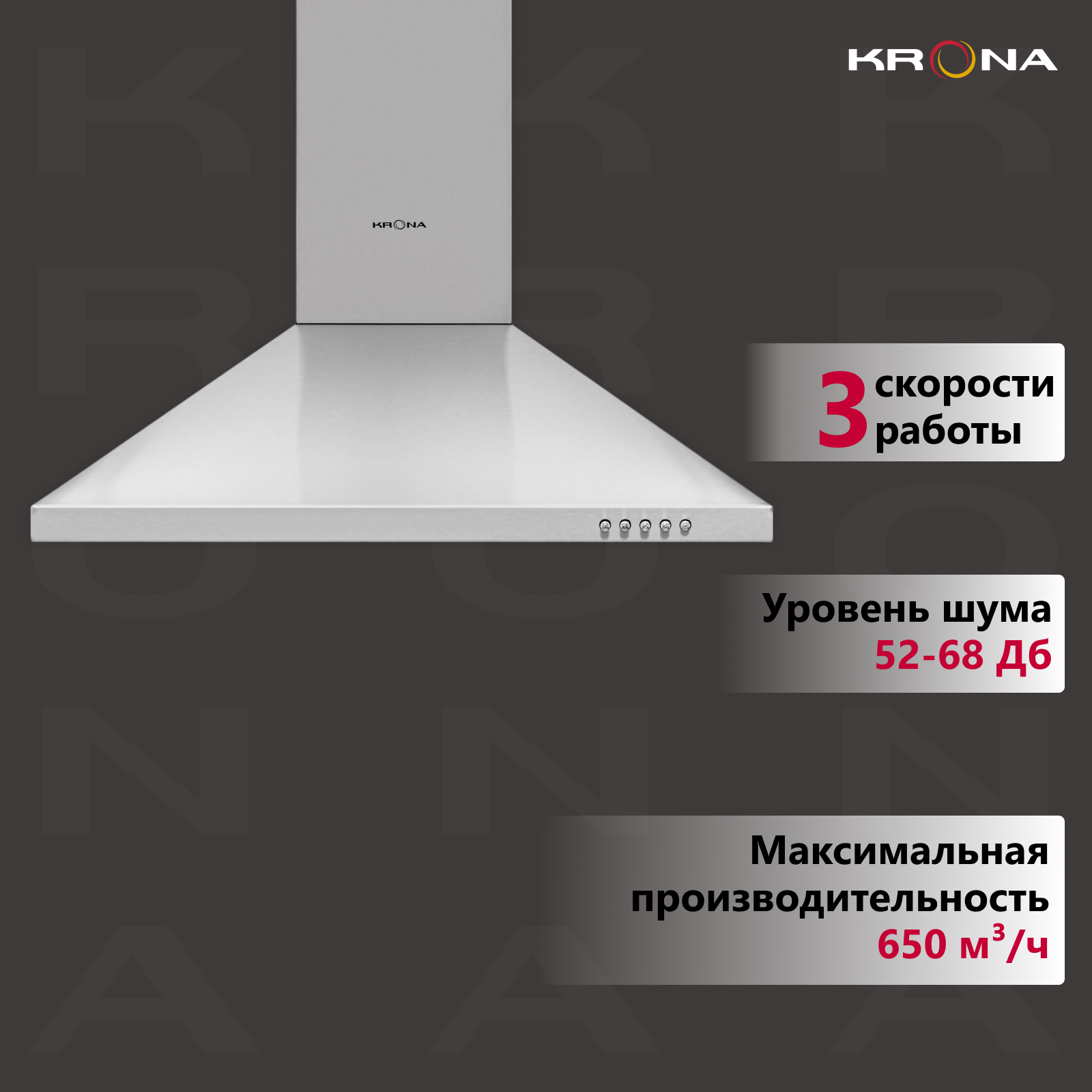 Вытяжка кухонная 60 см купольная KRONA BRIEF 600 INOX PB информация: