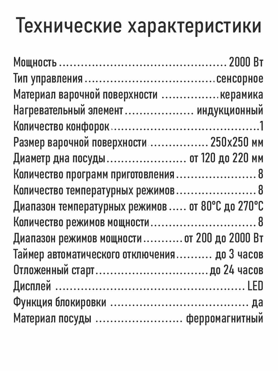 Плита электрическая индукционная с таймером, 1 конфорка информация: