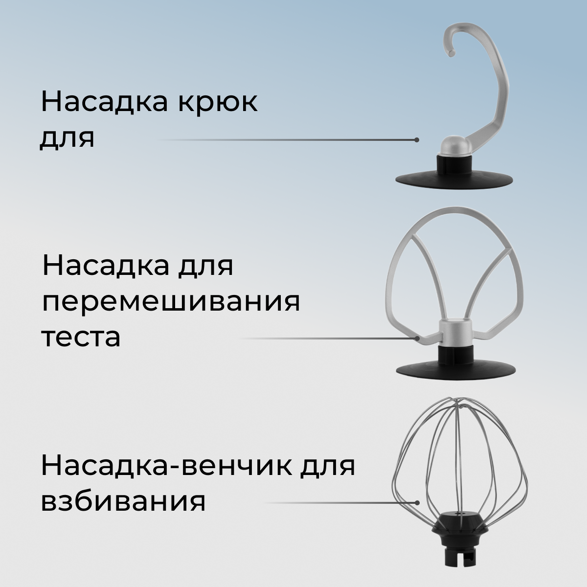 | Насадки | венчик для взбивания / крючки для замешивания теста / насадка-блендер |