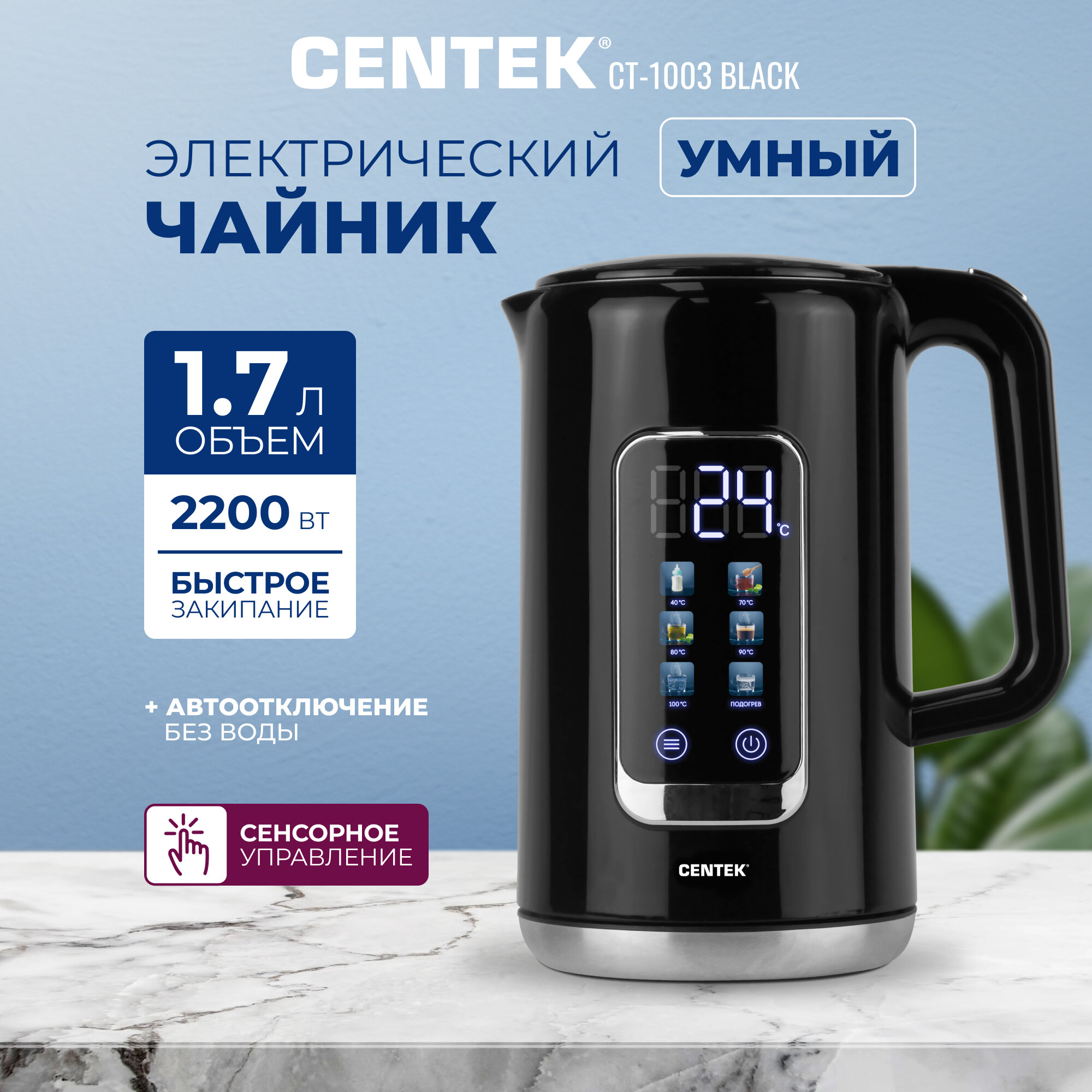 10 цен на Умный чайник электрический CENTEK CT-1003 Black: 1.7л/ 2200Вт/ сенсорное управление/ 5 режимов температуры