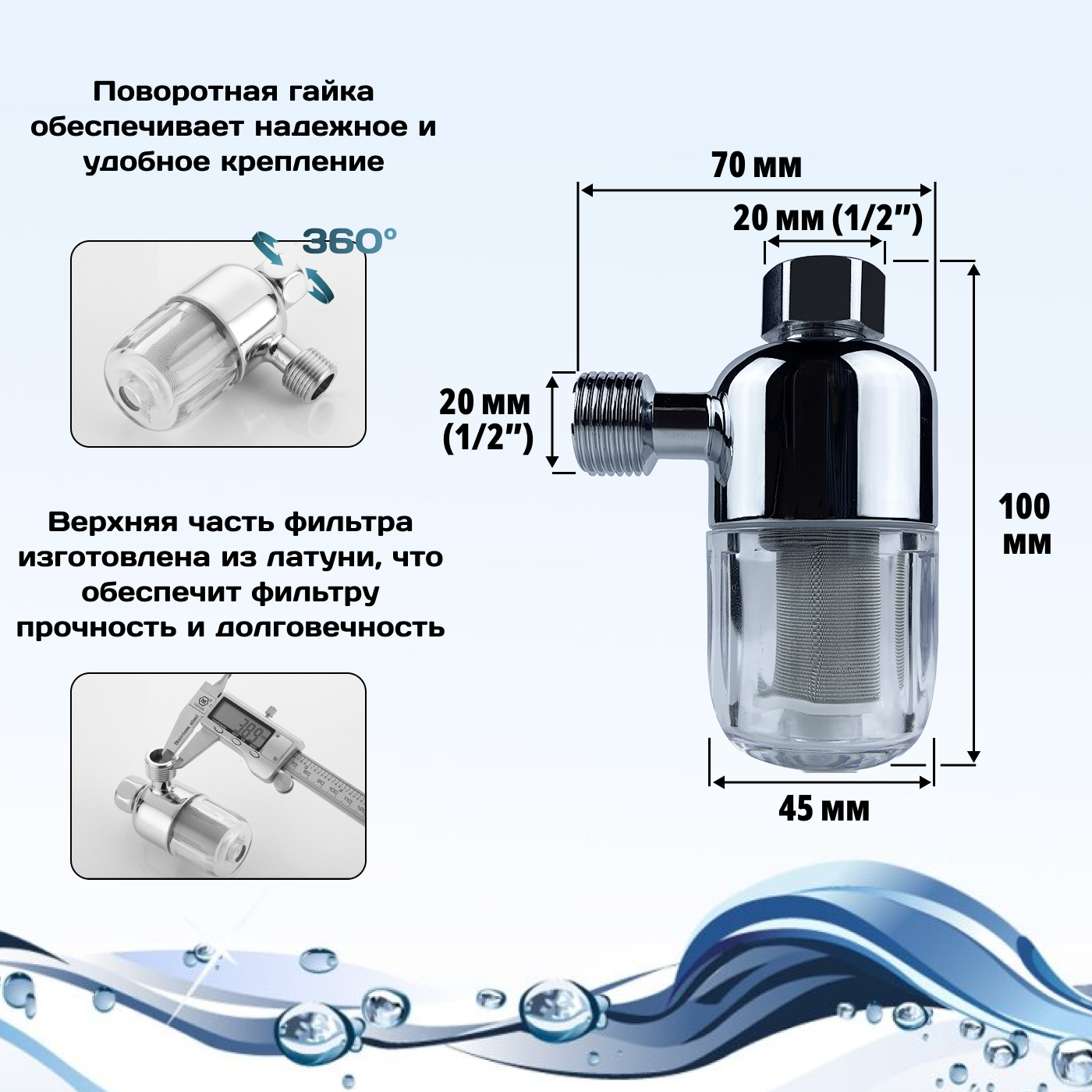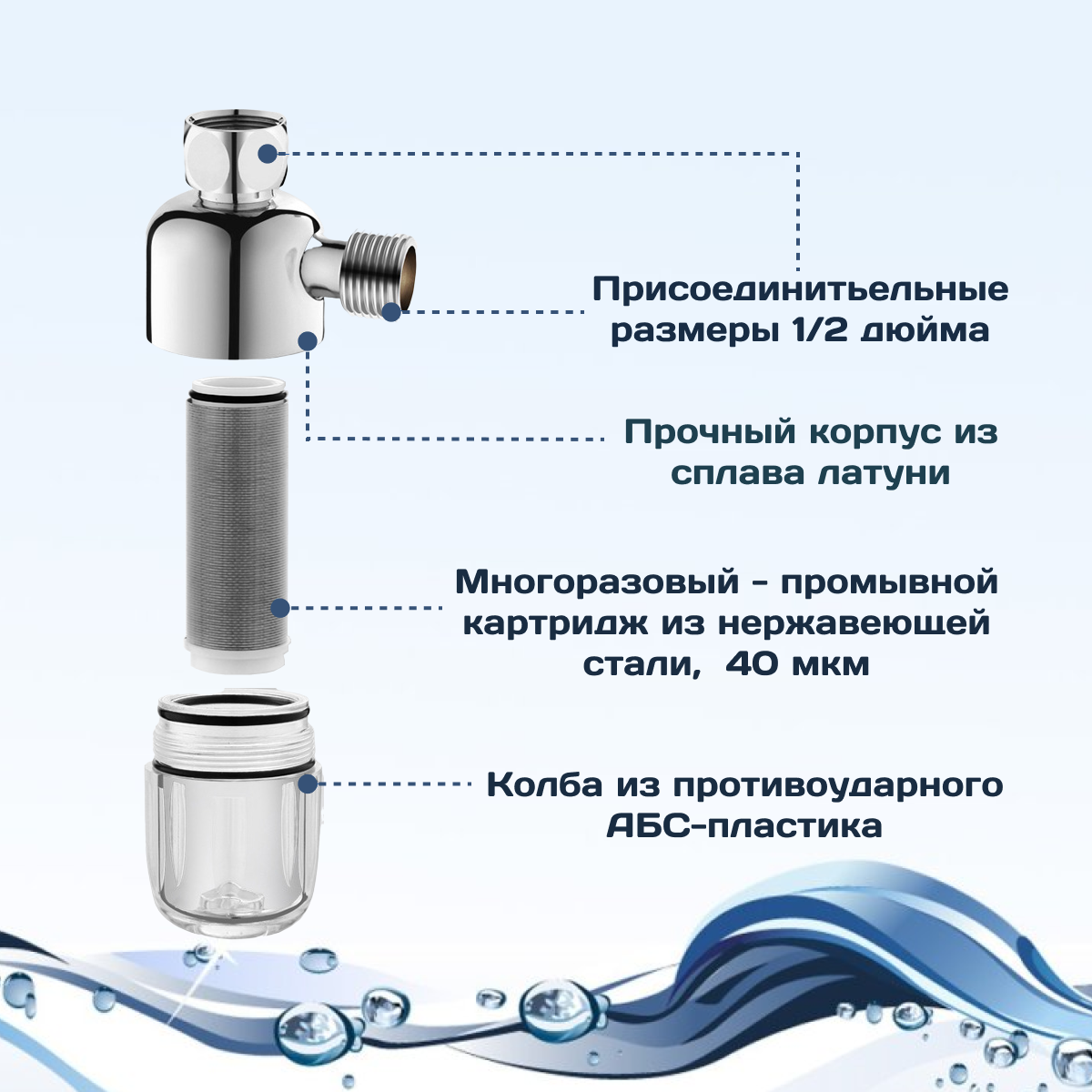 Фильтр для воды, душа многоразовый промывной грубой очистки. Предфильтр защиты бойлера и др бытовой техники. информация: