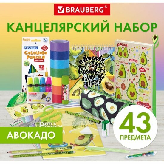 Подарочный набор канцелярии для школьника Brauberg Avocado, 43 предмета, универсальный, 18 наименований, 880951 1 835 ₽