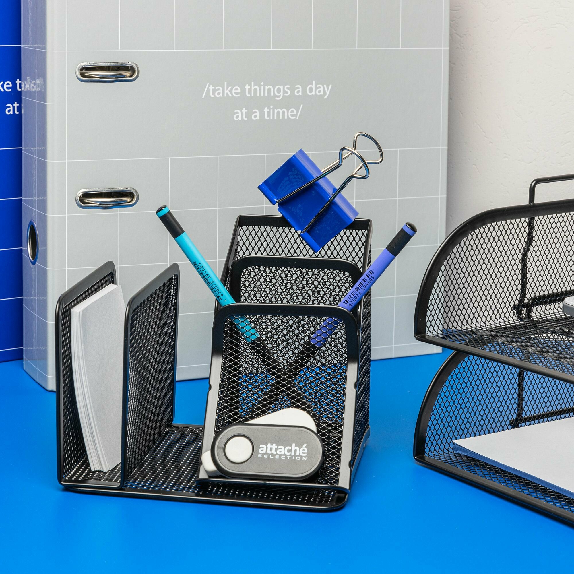 Четырехсекционная подставка Attache для ручек, писем, металлическая сетка, 145х130х128 мм, чёрная 68 . 1 660 ₽