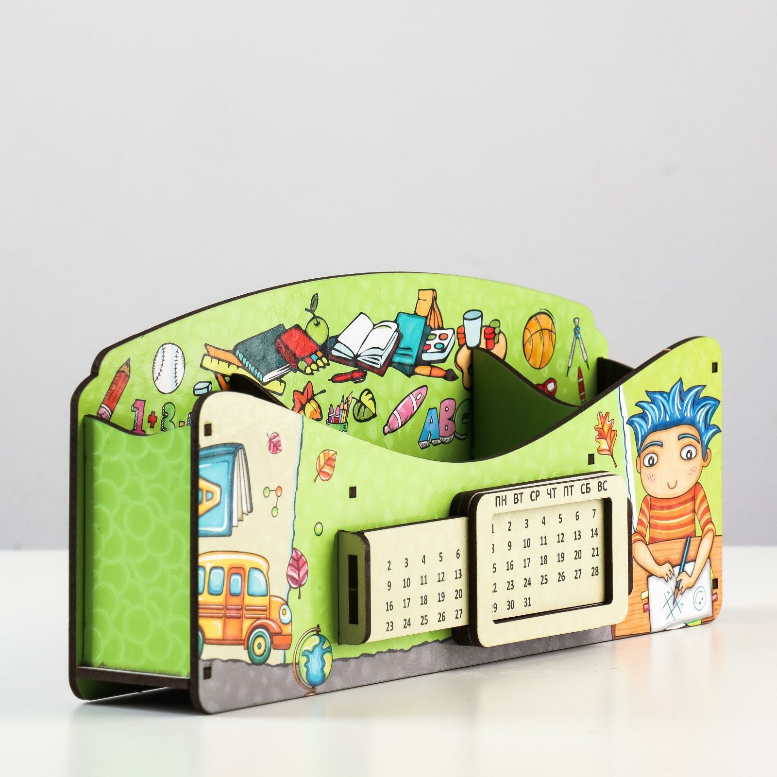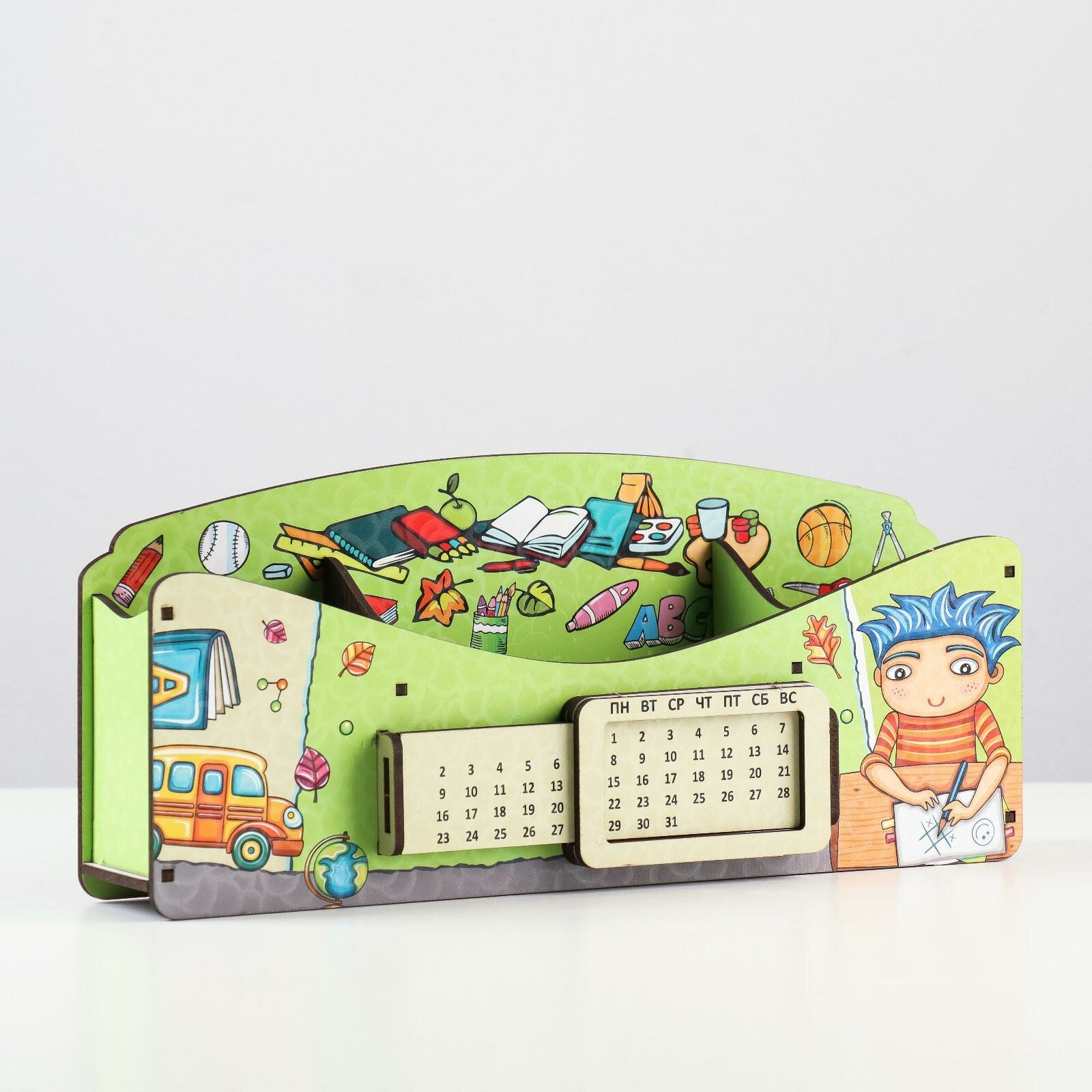 Органайзер для канцелярских предметов "Мальчик ",вечный календарь. информация:
