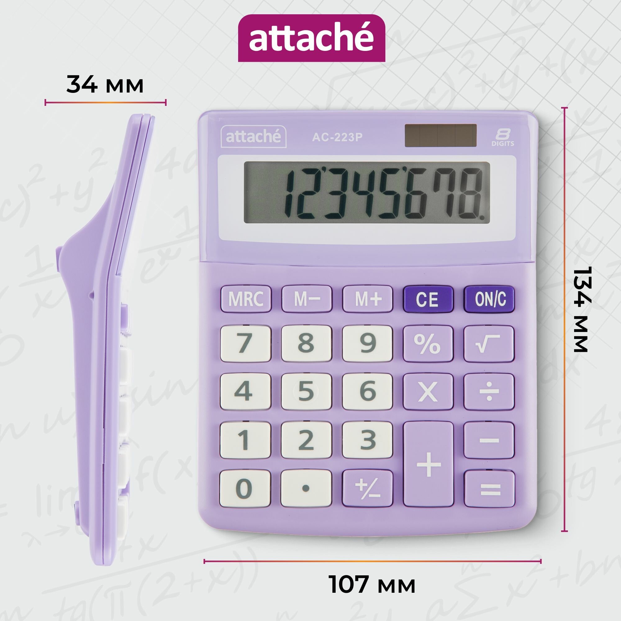 10 цен на Калькулятор Attache Настольный, AС-223P, 8 разрядов, двойное питание, фиолетовый