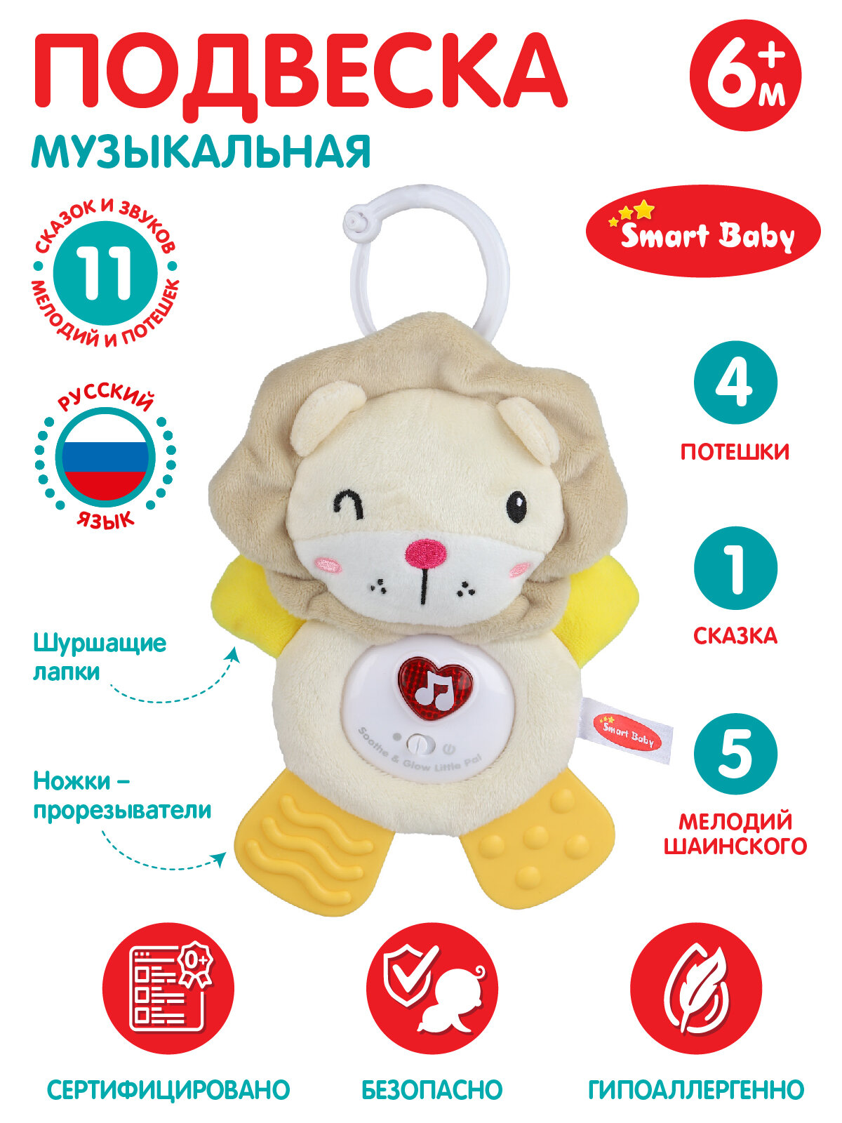 Отзывы на Подвеска музыкальная с прорезывателем ТМ Джамбо Тойз, "Львенок", 11 звуков/сказок/мелодий/потешек, JB0333392