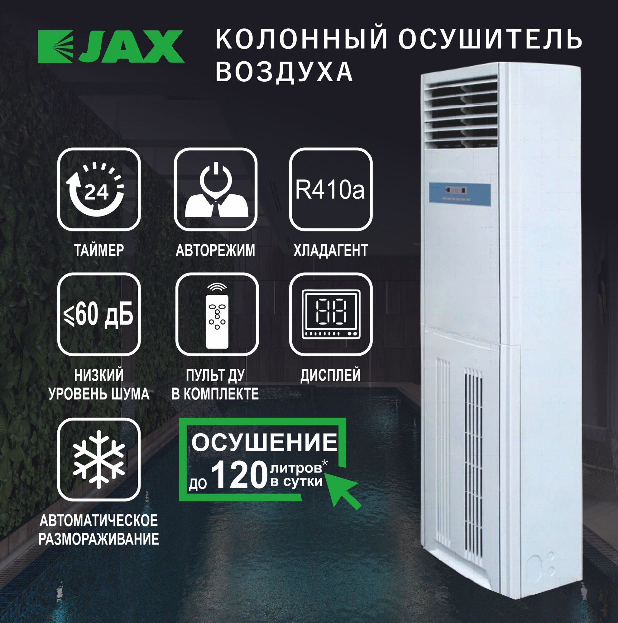 Колонный осушитель воздуха JHAVD-120D до 200 м2 для бассейна информация: