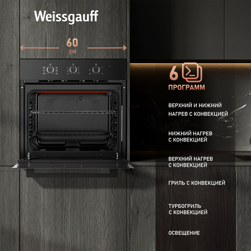 Электрический духовой шкаф Weissgauff EOV 676 SB Black Edition, конвекция и гриль, 60 см, 3 года гарантии