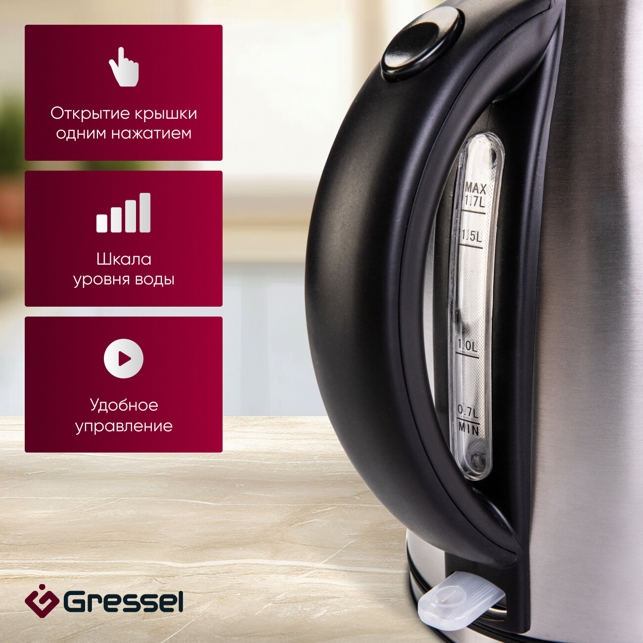 Чайник электрический Gressel GRK-1109S (серебристый) информация: