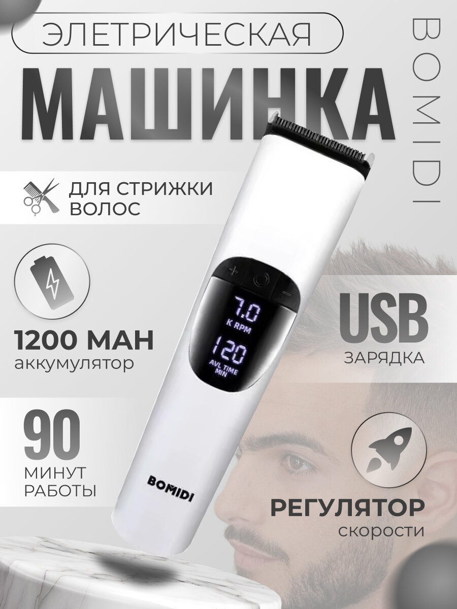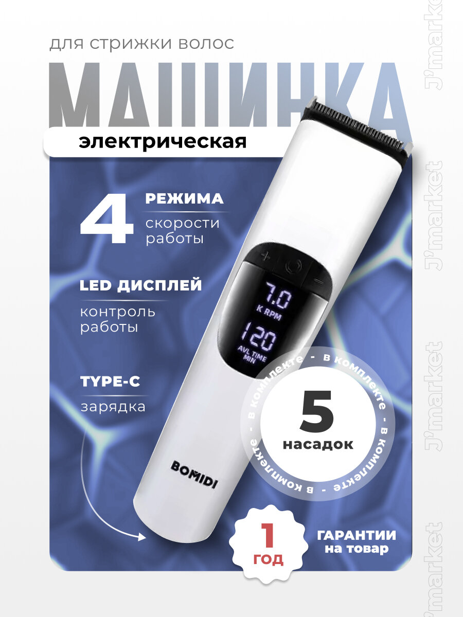 Машинка для стрижки волос Bomidi L1 белая с дисплеем, 5 насадками и маслом информация: