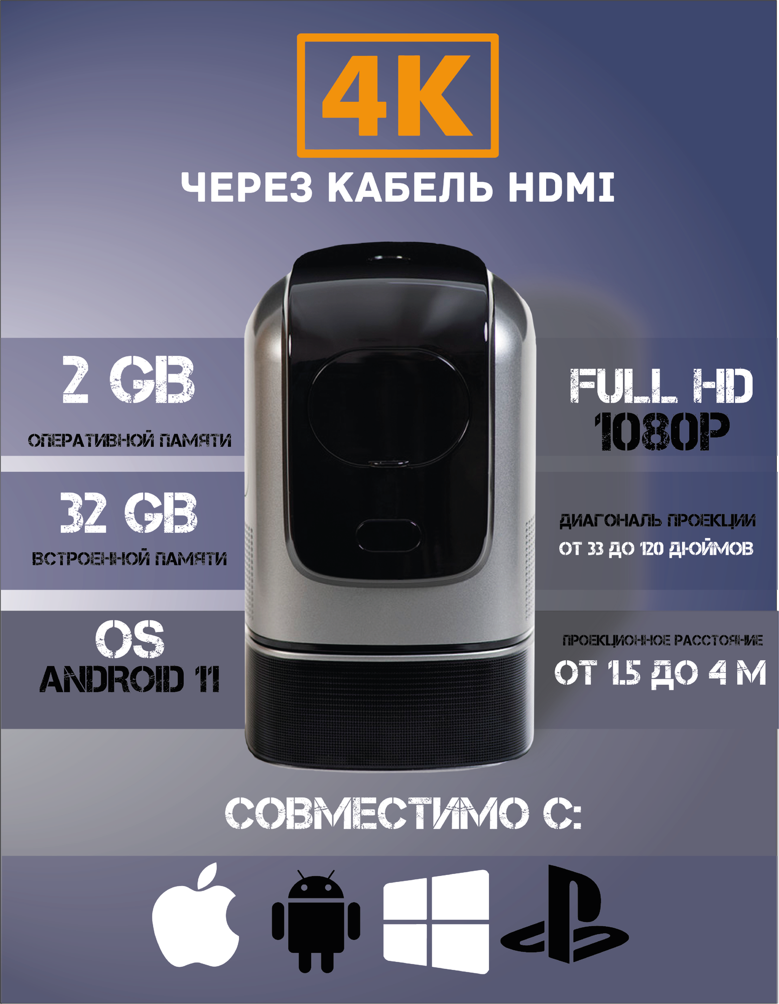 | Мин. проекционное расстояние | 4 м |