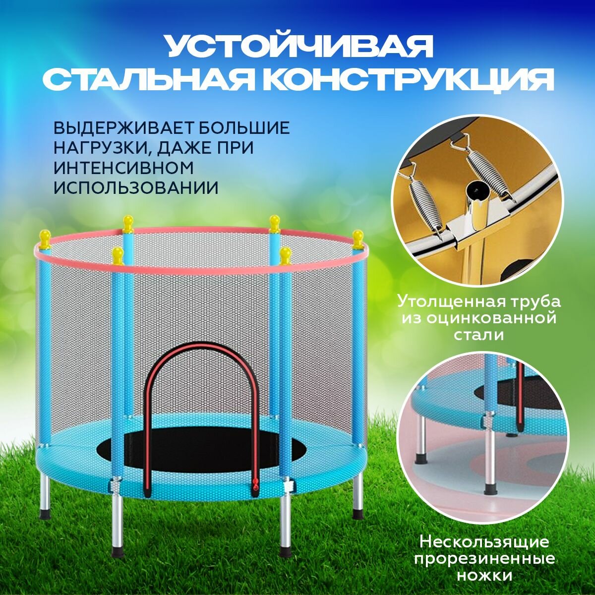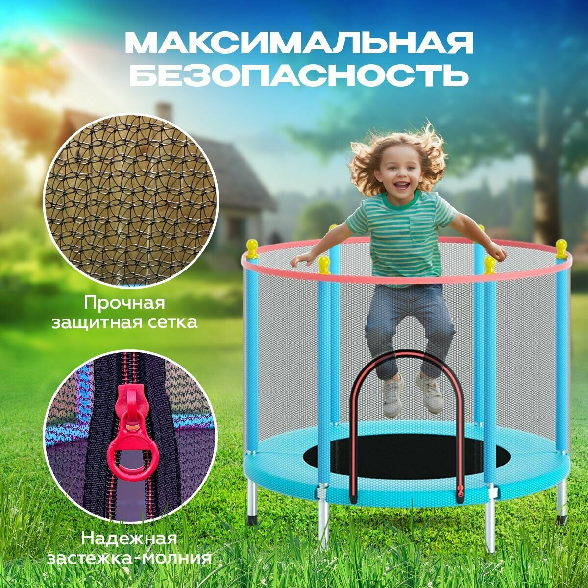 Батут с защитной сеткой детский и для взрослых каркасный уличный для джампинга и дома дачи спортивный манеж для малышей мини 140 см синий информация: