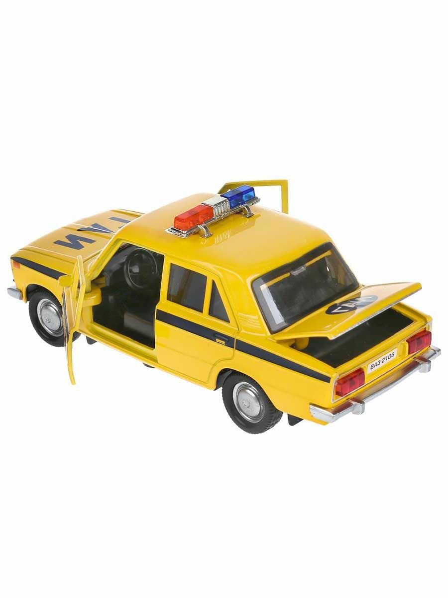 Технопарк 2106-12SLPOL-YE 300021 Машина металл свет-звук ВАЗ-2106 жигули полиция 12 см, двери, багаж, кор. Тех