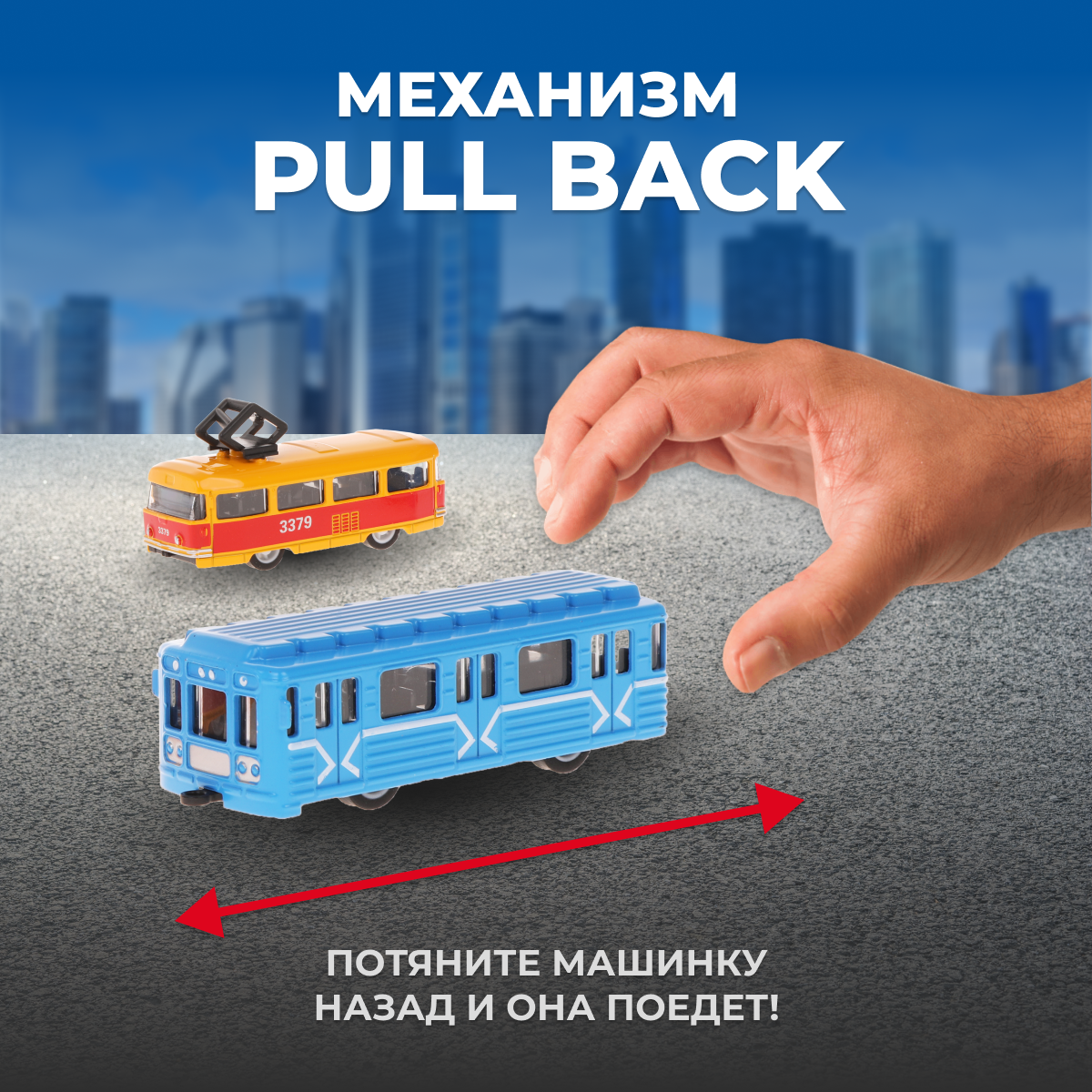 10 цен на Набор металлических машин pull-back Городской транспорт, трамвай, вагон метро