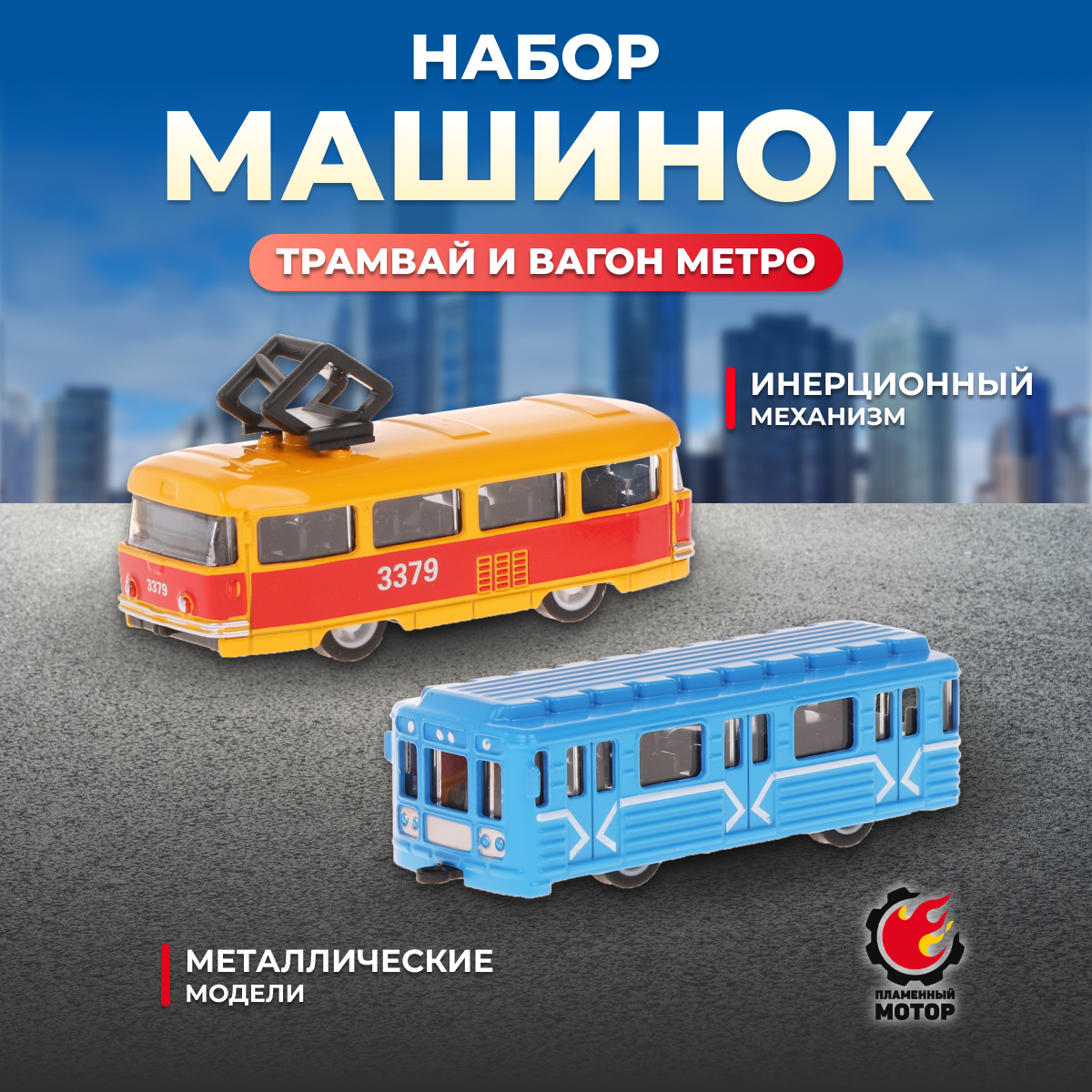 Набор машин мет. pull-back Городской транспорт, трамвай, вагон метро