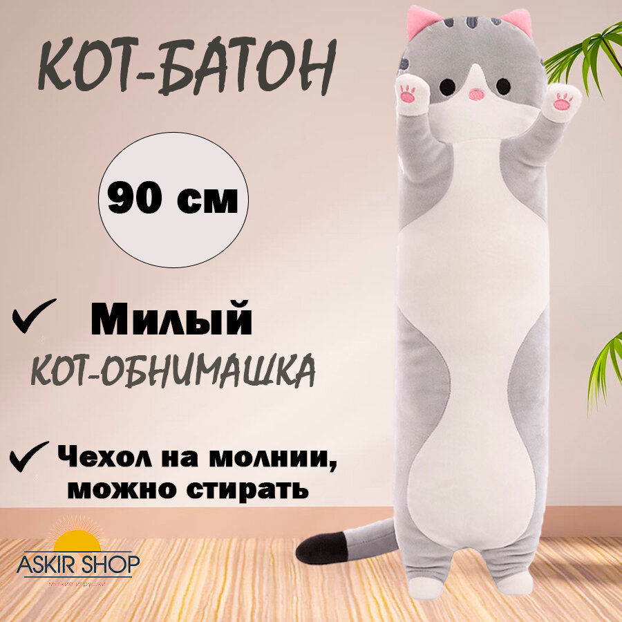 мягкая игрушка кот батон серый 90 см 799 ₽