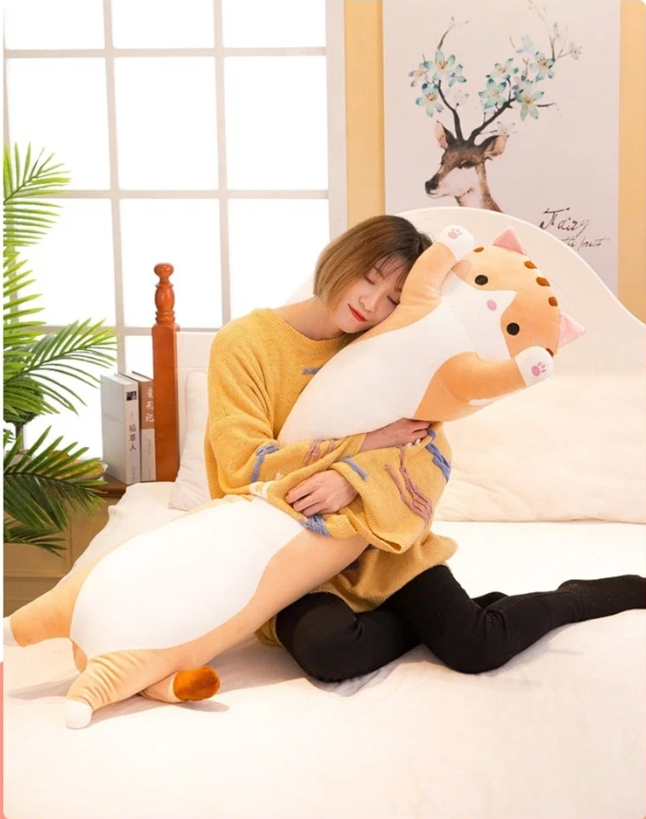 Игрушка-подушка длинный Кот-батон, 70 см, оранжевый