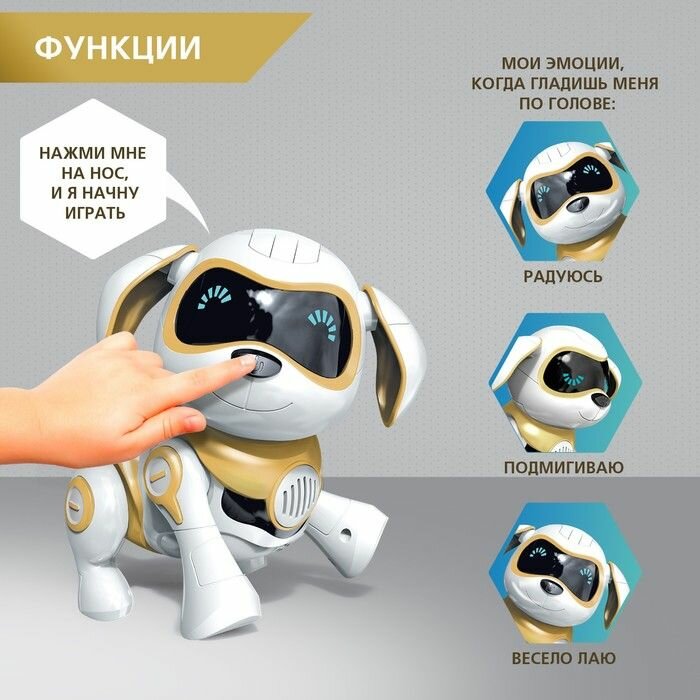 Робот собака «Чаппи» IQ BOT, интерактивный: сенсорный, свет, звук, музыкальный, танцующий, на аккумуляторе, на русском языке, золотой