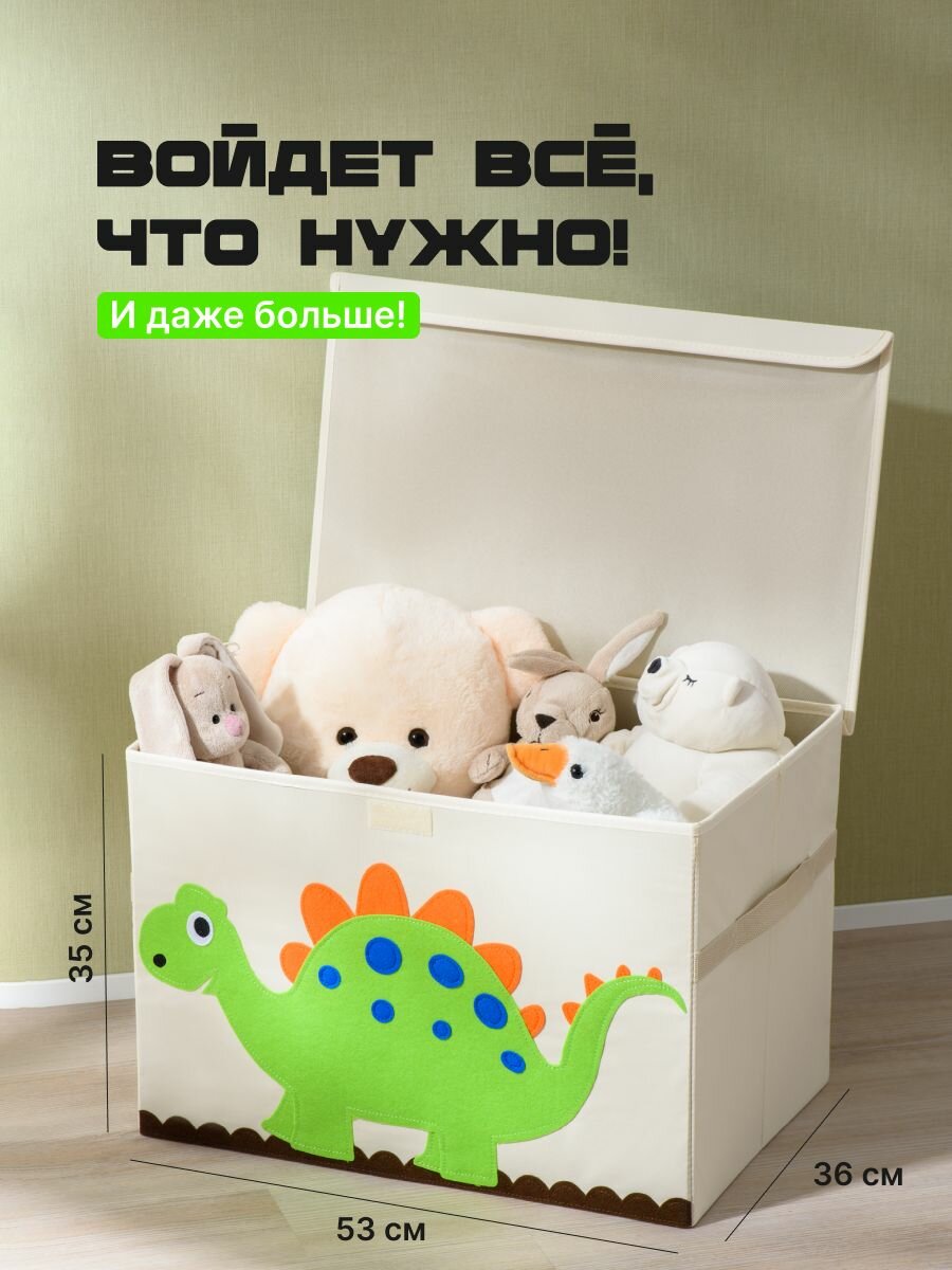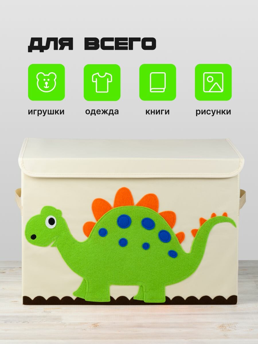 Тканевый ящик для игрушек с крышкой, Kids Zone, Складной контейнер для хранения/ Корзина под детские игрушки большая, Динозавр