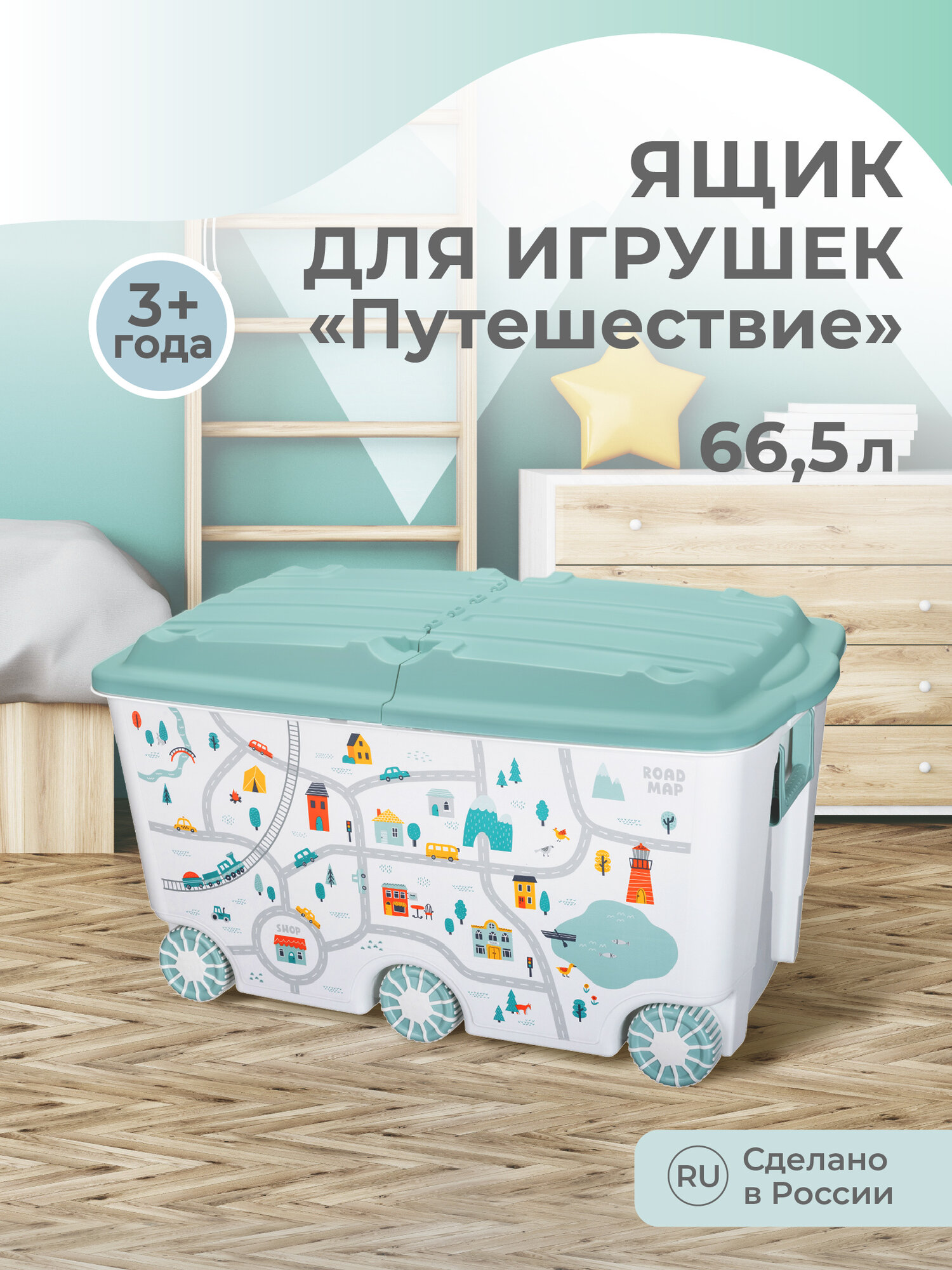 Отзывы на Пластишка Ящик для игрушек на колесах «Путешествие», с декором, 685 × 395 × 385 мм, цвет светло-голубой