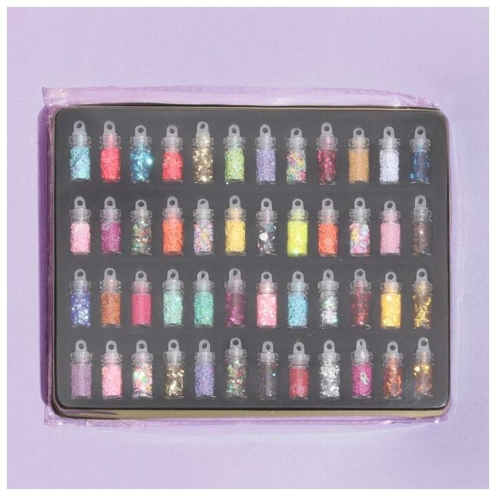 Набор для декора ногтей, в пластиковом органайзере, набор 48 бутылочек, разноцветные информация:
