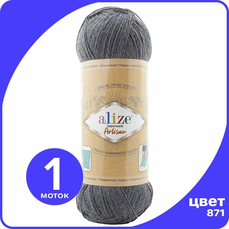 10 цен на Пряжа Alize Superwash Artisan 871 никель