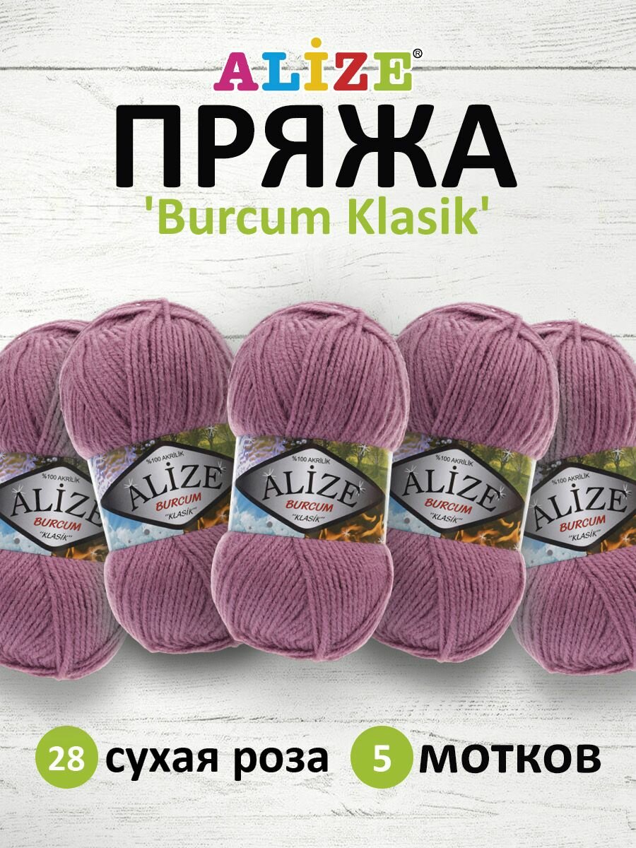 Пряжа ALIZE "Burcum Klasik", 100 г, 210 м, 100% акрил, цвет 28 Сухая роза, 5 мотков 1 132 ₽