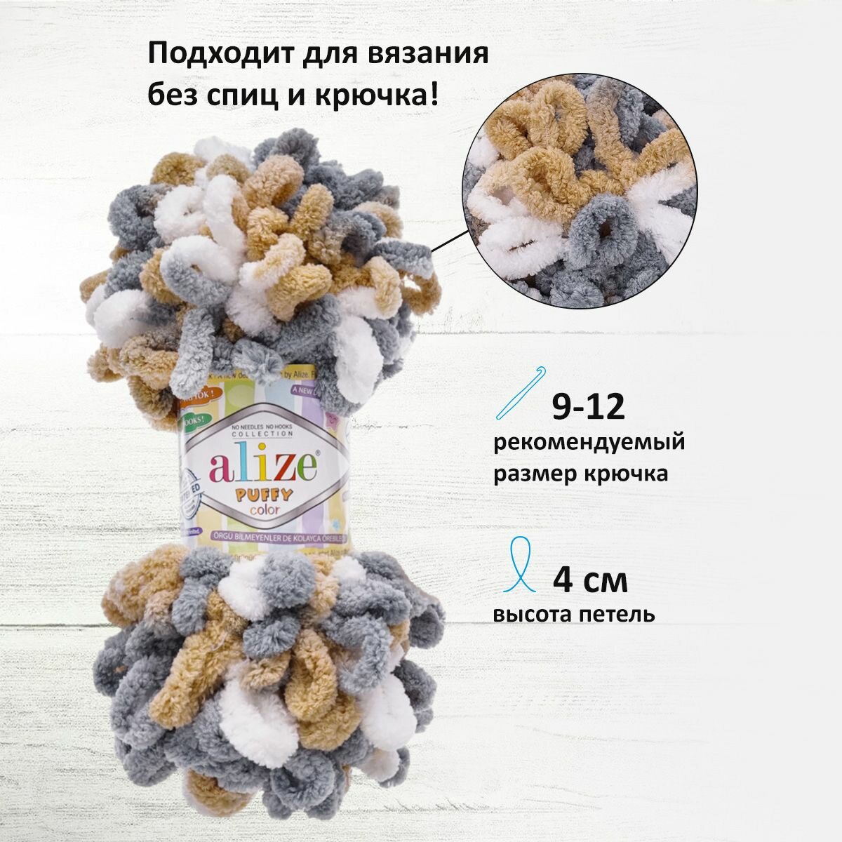 Отзывы на Пряжа для вязания руками с готовыми петлями ALIZE 'Puffy Color' 100г, 9м (6395 секционный), 5 мотков