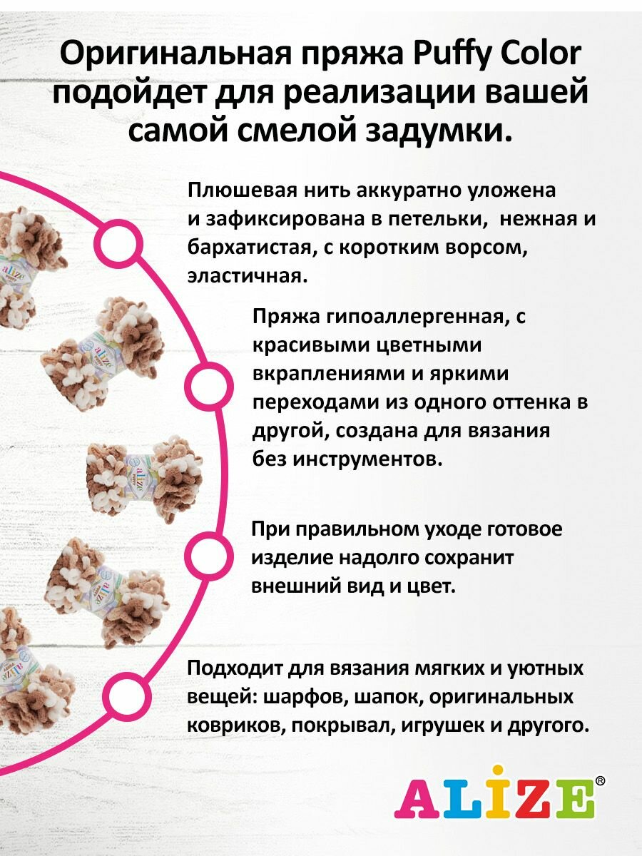 Пряжа PUFFY COLOR (Alize), песочный принт - 5926, 100% микрополиэстер, 5 мотков, 100 г, 9 м.
